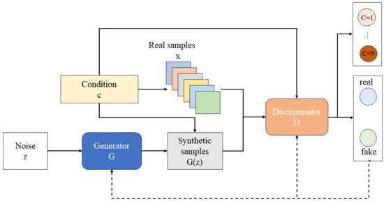Traditional CGAN is prone to vanishing gradients and mode collapse during training. In addition, it lacks effective control over sample categories, which limits the diversity and authenticity of generated samples and makes it difficult to meet the practical needs of fault sample augmentation in complex industrial environments. As a result, model training often becomes unstable, and the quality and diversity of generated samples remain limited, restricting their ability to fully support practical fault diagnosis tasks. To address these issues, this section proposes an advanced CGAN-based data augmentation framework designed to mitigate data imbalance.