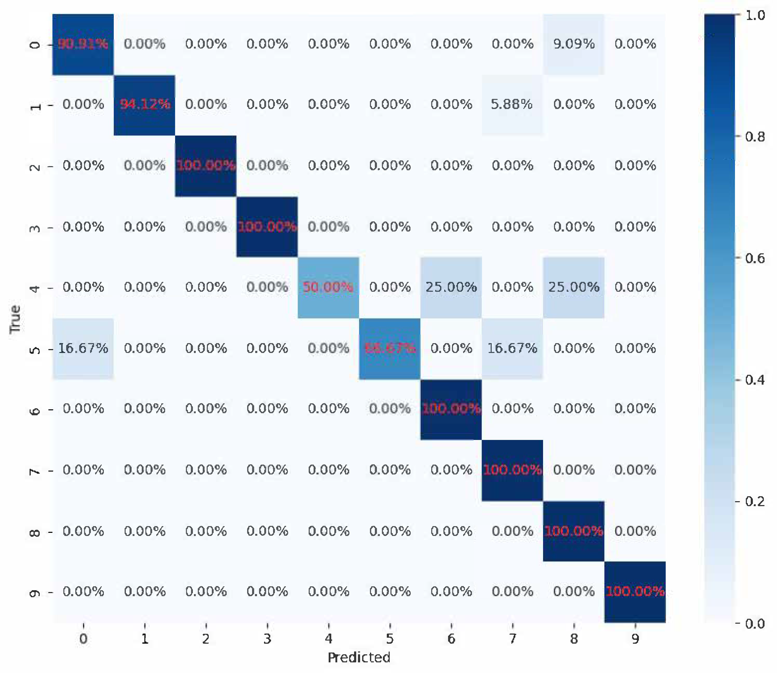 To further demonstrated the proposed fault diagnosis method, a comparative experiment is conducted using traditional CNNs and ResNets for fault diagnosis. Both models were trained with high-quality synthetic samples generated by ACWGAN, and their classification performance was evaluated on the same dataset. The confusion matrix of the CNN-based fault diagnosis results is presented in