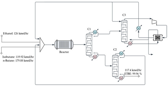 - Babaie, O.; Esfahany, M.N. Optimum process configuration for ETBE production based on TAC minimization. Sep. Purif. Technol. 2021, 256, 117744. [Google Scholar] [CrossRef]