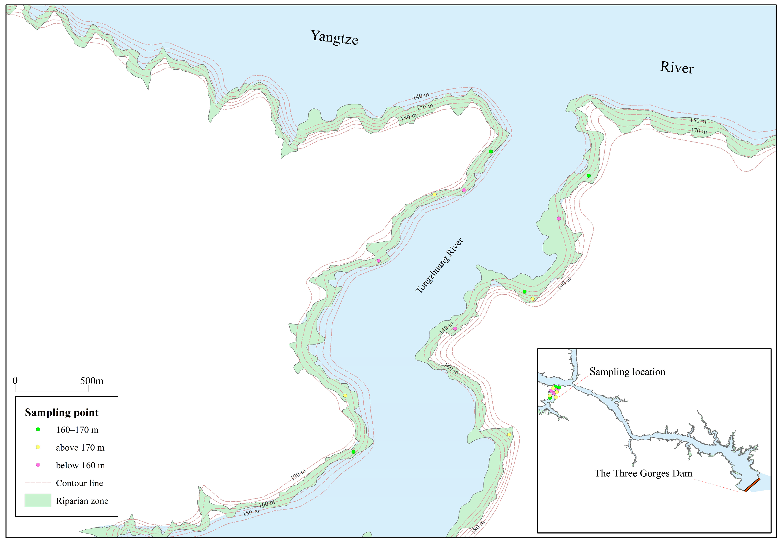 - Li, Q.H.; Wang, X.G.; Liu, X.L. Progress of Research of the Effect of Impounding on Soil and Vegetation in Water-Level Fluctuation Zone of the Three Gorges Reservoir. J. Hydroecol. 2024. (In Chinese) [Google Scholar] [CrossRef]