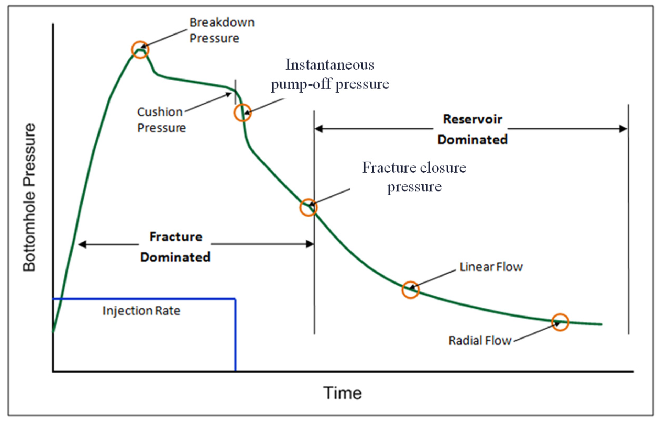 Application: During experimental procedures, pressure decline data are collected after each shut-in cycle and plotted against √t. The fracture closure pressure corresponds to the deviation point from linear behavior.