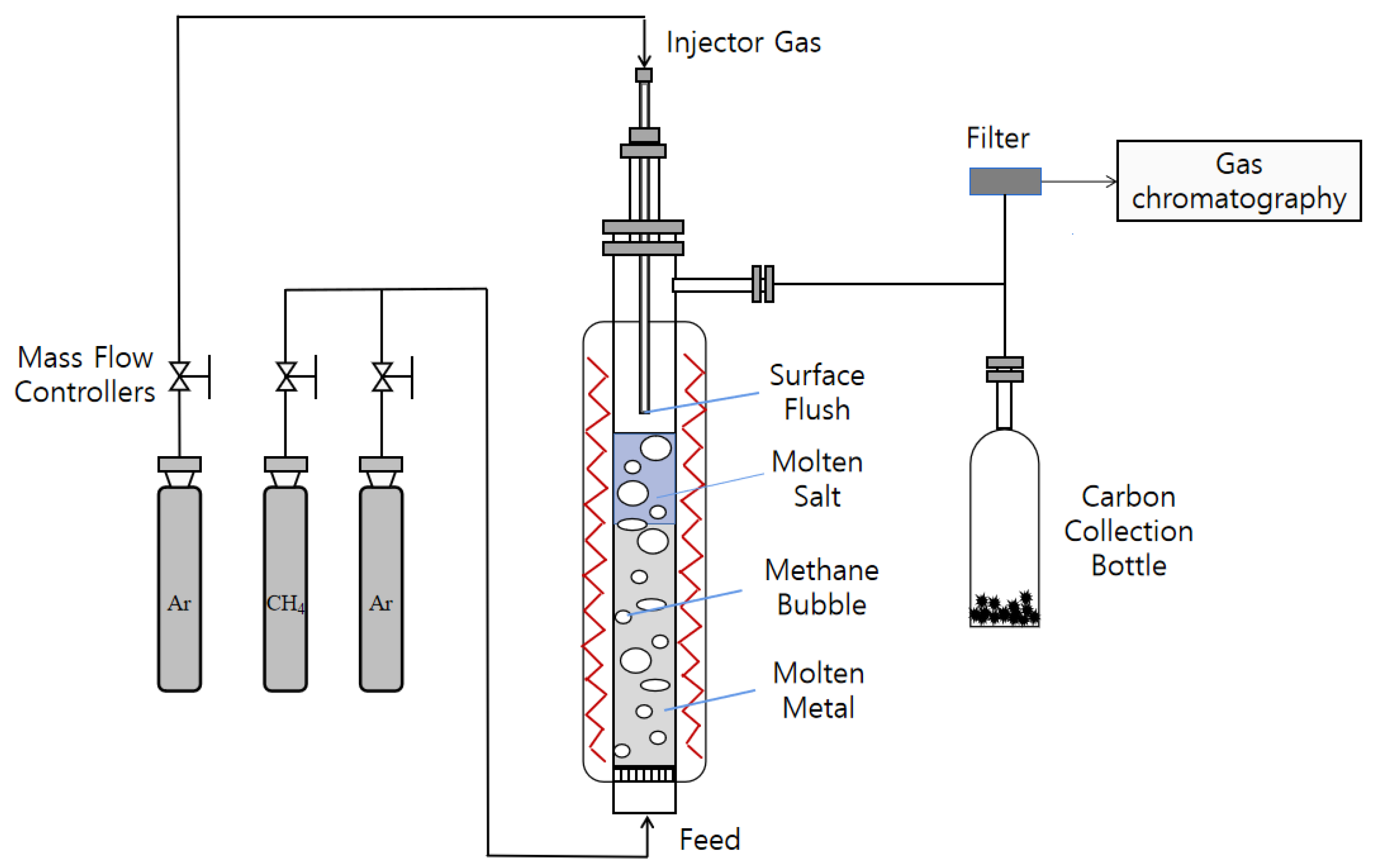 - Rahimi, N.; Kang, D.; Gelinas, J.; Menon, A.; Gordon, M.J.; Metiu, H.; McFarland, E.W. Solid carbon production and recovery from high temperature methane pyrolysis in bubble columns containing molten metals and molten salts. Carbon 2019, 151, 181–191. [Google Scholar] [CrossRef]