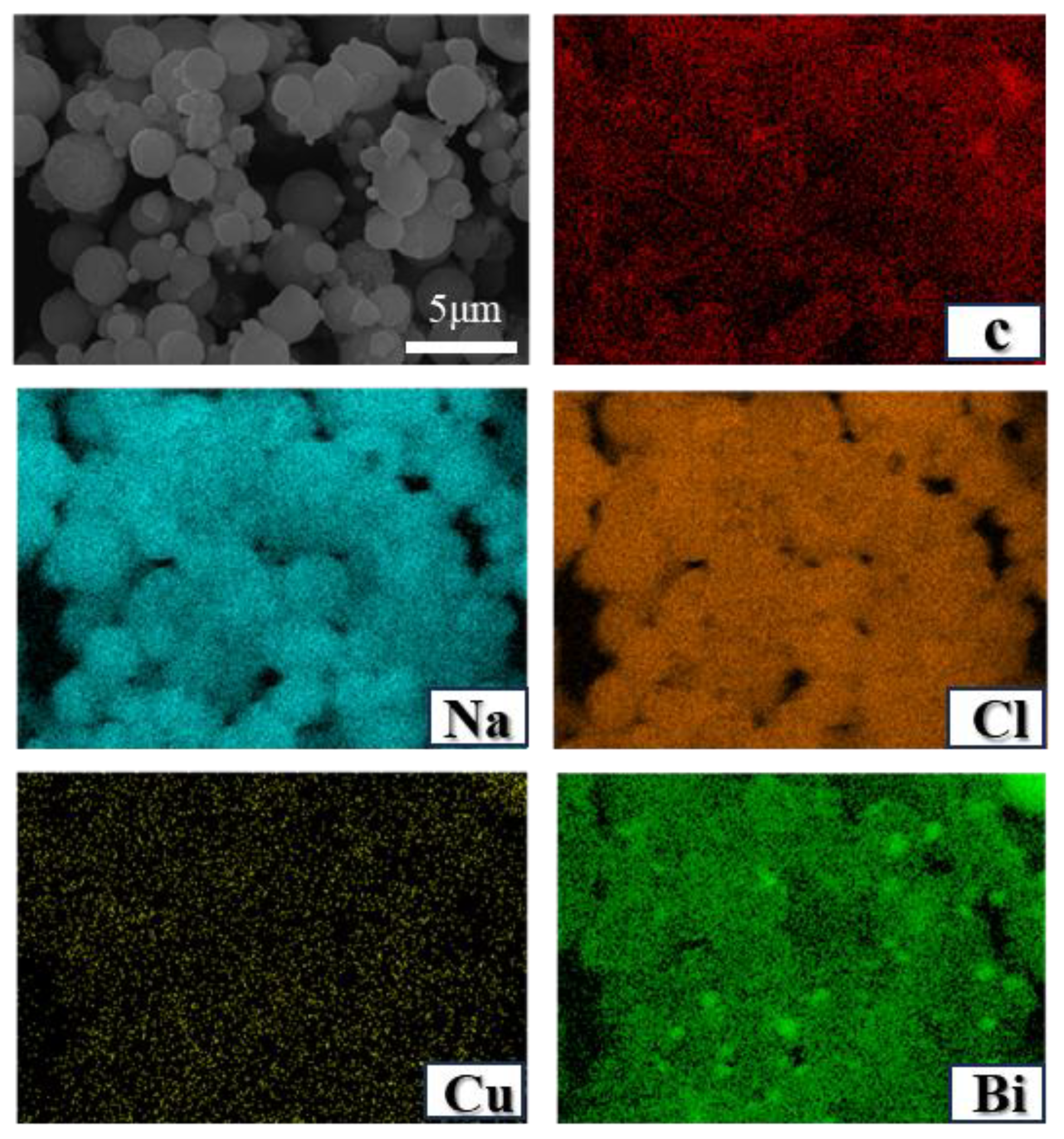 | Sample | C (wt%) | Cu (wt%) | Bi (wt%) | Na (wt%) | Cl (wt%) |
