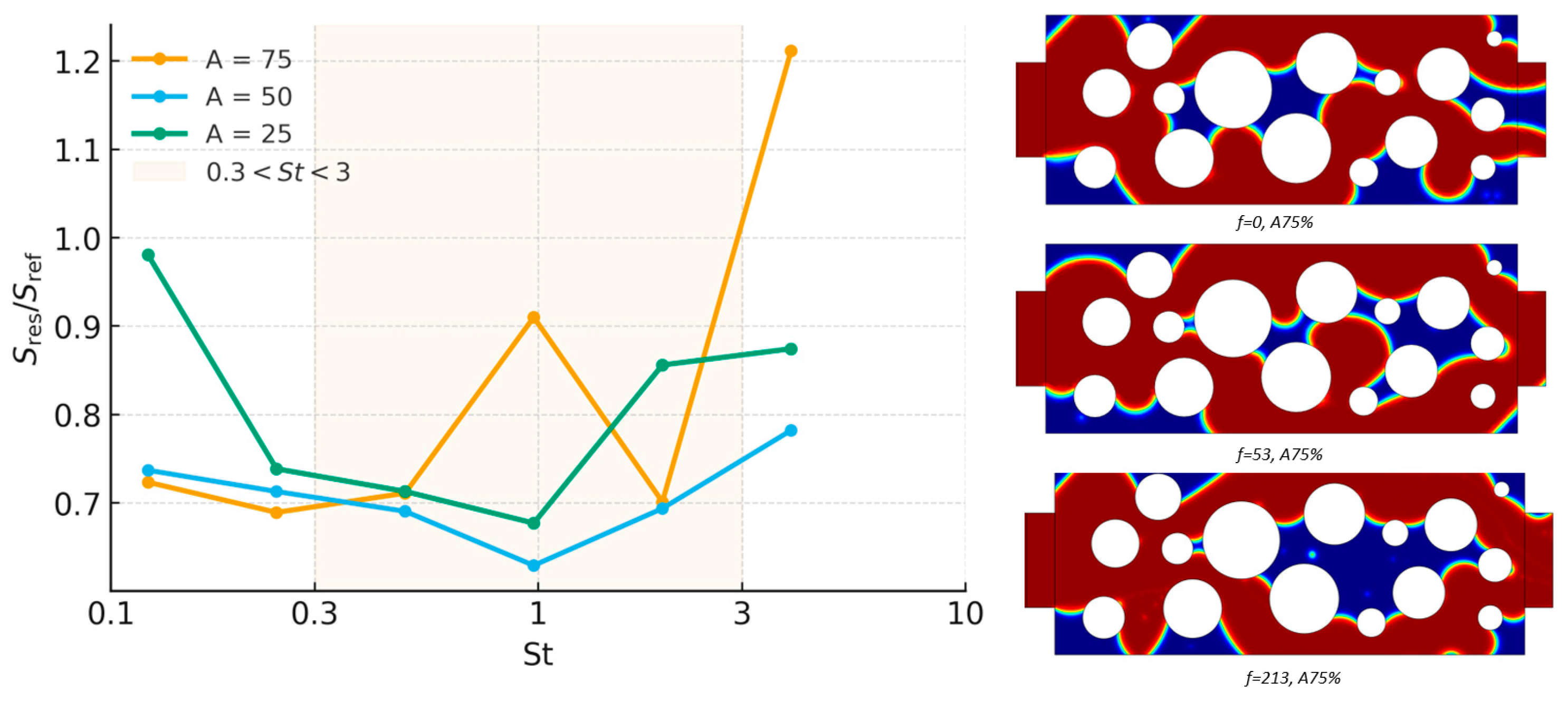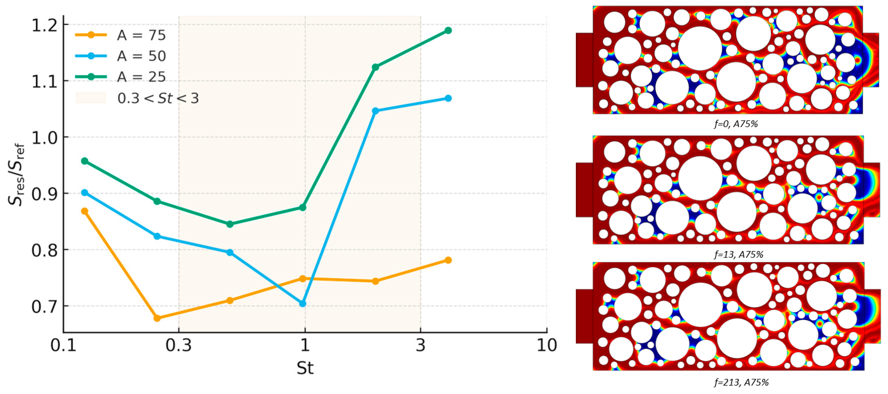 3.2. Effect of Amplitude and Frequency at Different Porosity Levels