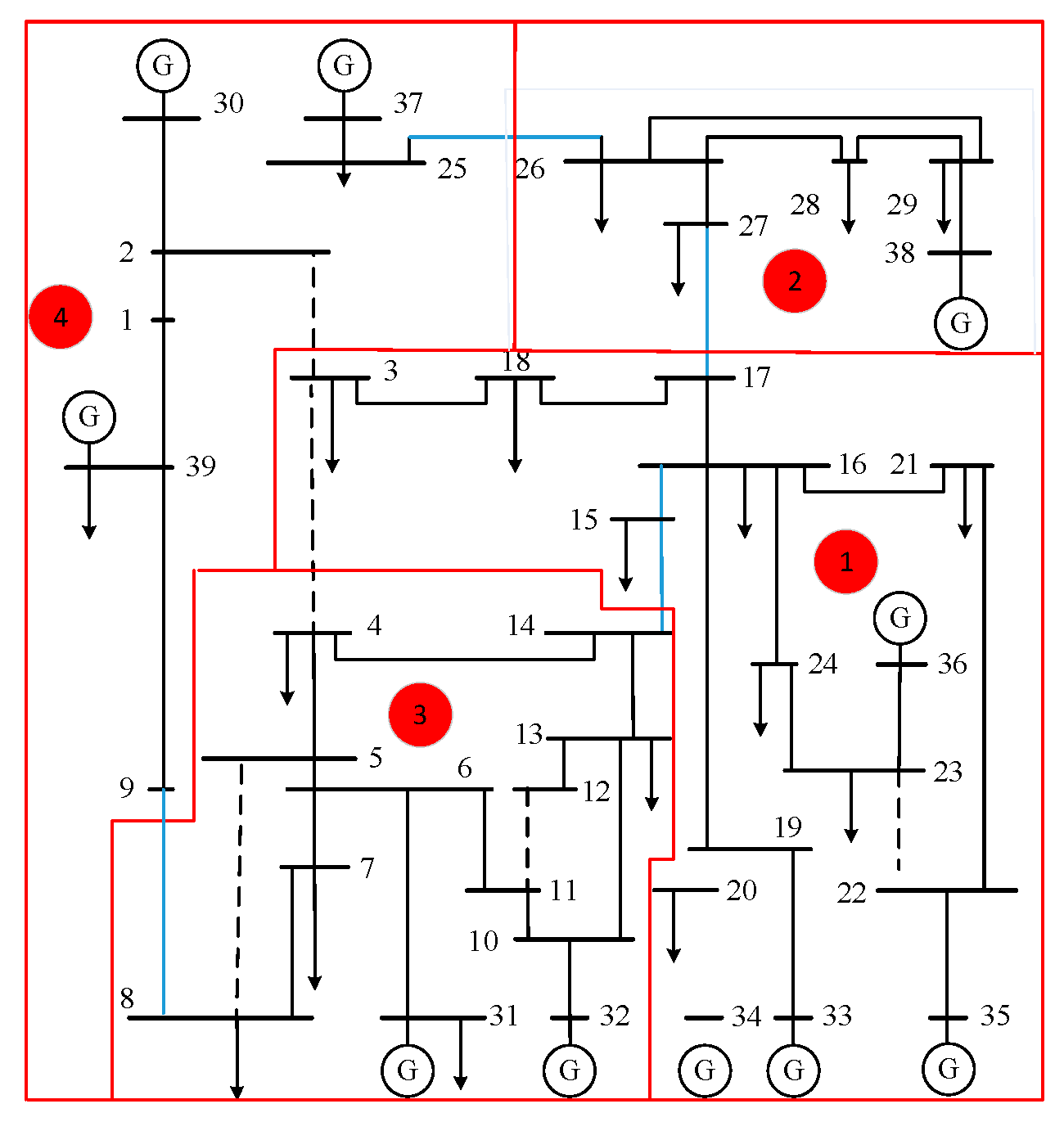 - Balasubramaniam, K.; Abdlrahem, A.; Hadidi, R.; Makram, E.B. Balanced, Non-Contiguous Partitioning of Power Systems Considering Operational Constraints. Electr. Power Syst. Res. 2016, 140, 456–463. [Google Scholar] [CrossRef]
