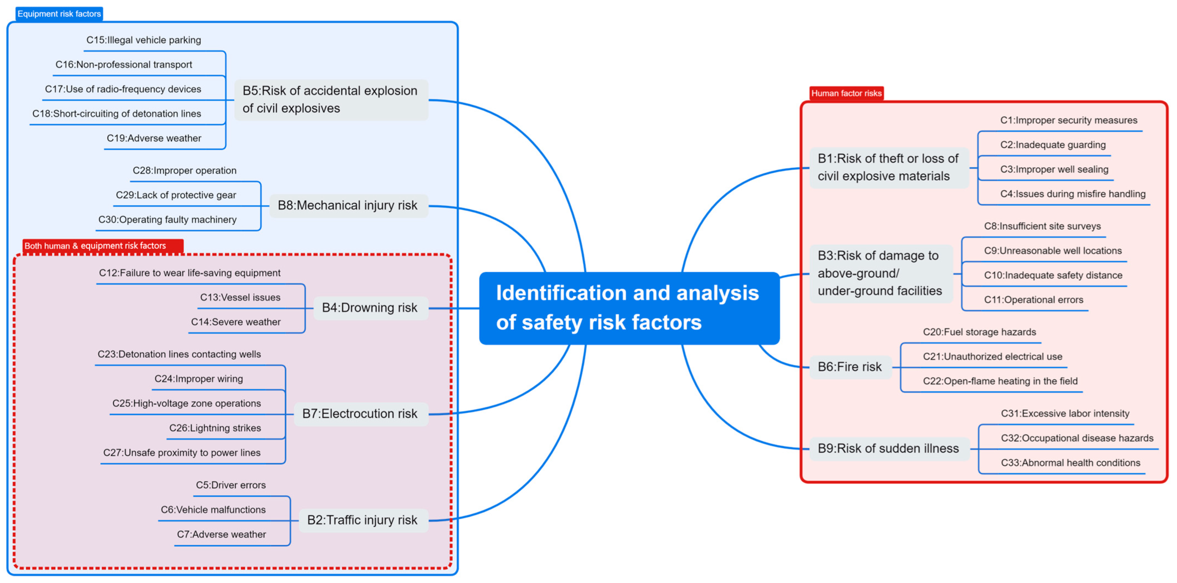 | B7: Electrocution risk | C23: Detonation lines contacting wells | Highly Hazardous | (0.75, 1, 1) | 0.91 | Important | (0.5, 0.75, 1) | 0.72 | Extremely Important | (0.75, 1, 1) | 0.59 |