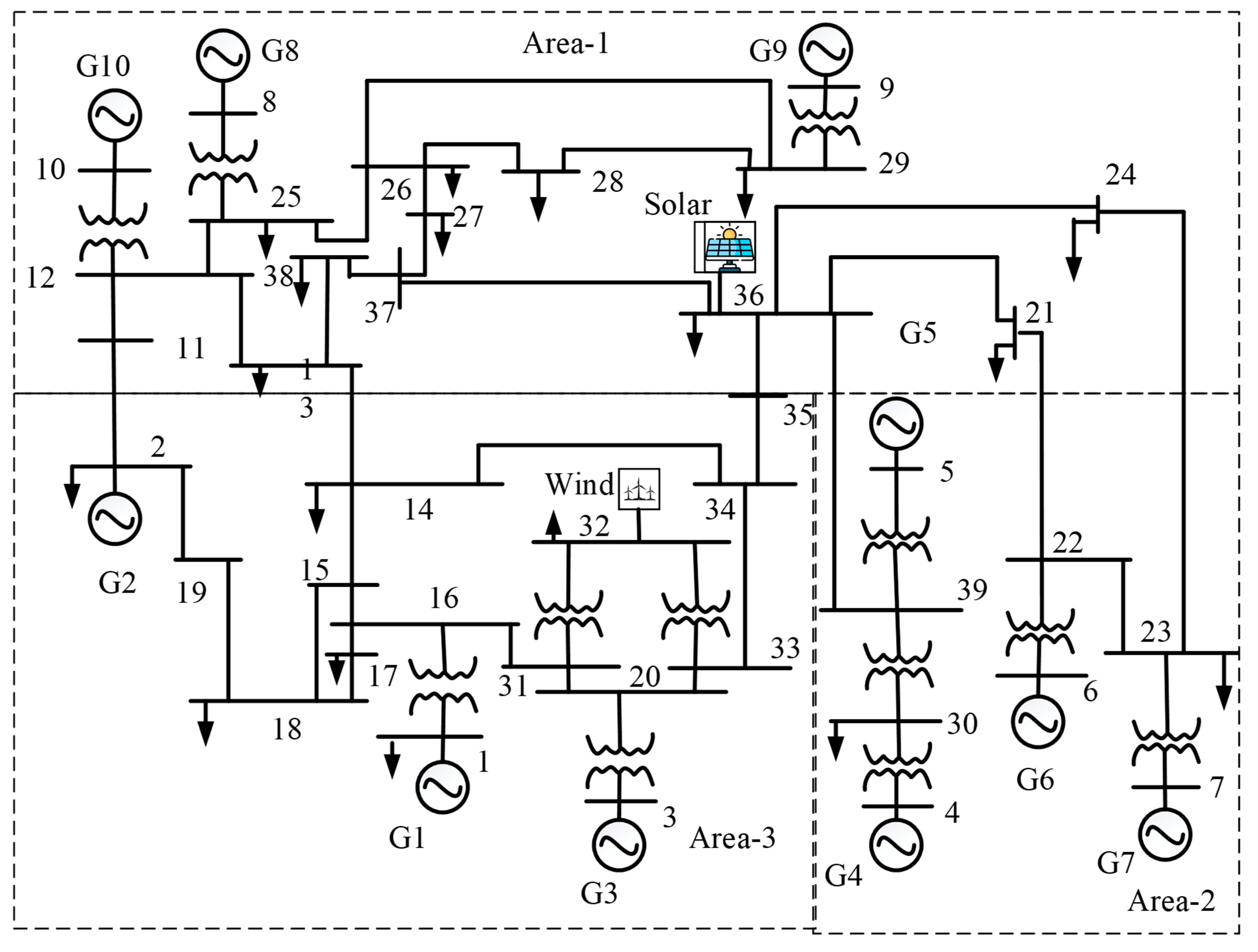Figure 19. IEEE-39 bus system [32].