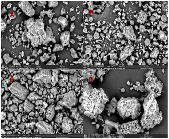 Structural micrograph of wheat flour varieties (A) gabilon variety flour, (B) Andino variety flour, (C) Espigon de Oro variety flour, and (D) plain flour.