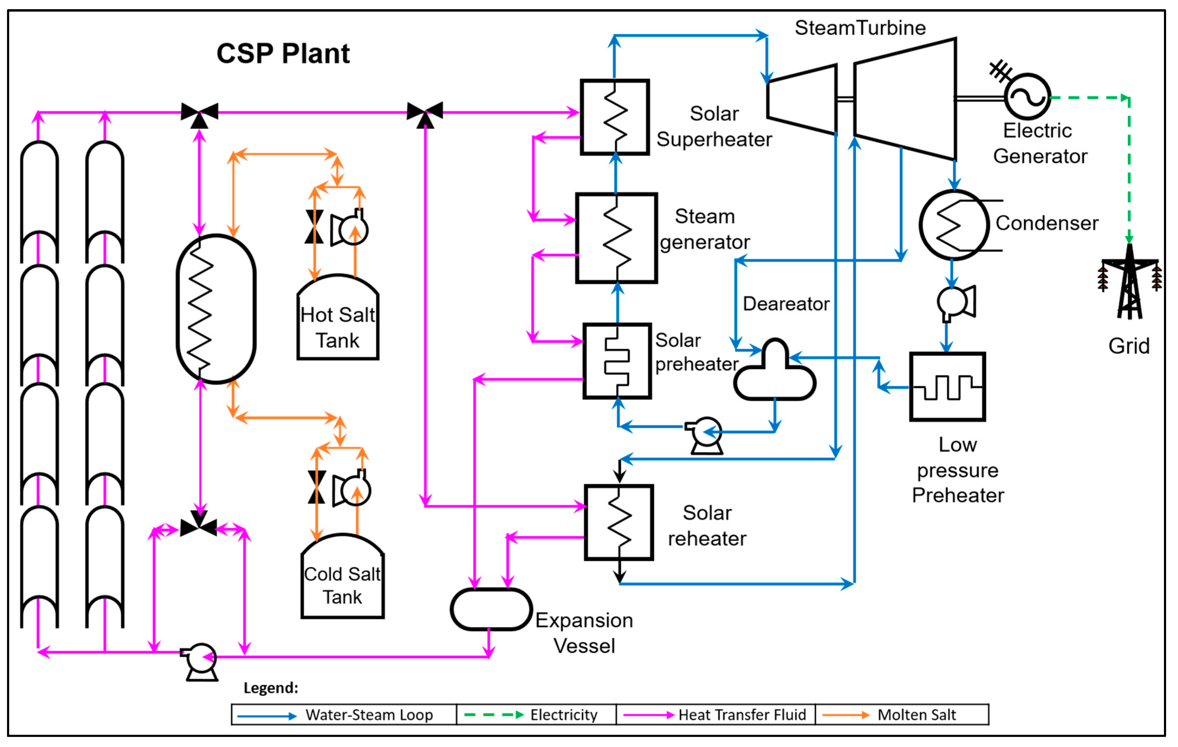 - Baharoon, D.A.; Rahman, H.A.; Omar, W.Z.W.; Fadhl, S.O. Historical development of concentrating solar power technologies to generate clean electricity efficiently—A review. Renew. Sustain. Energy Rev. 2015, 41, 996–1027. [Google Scholar] [CrossRef]