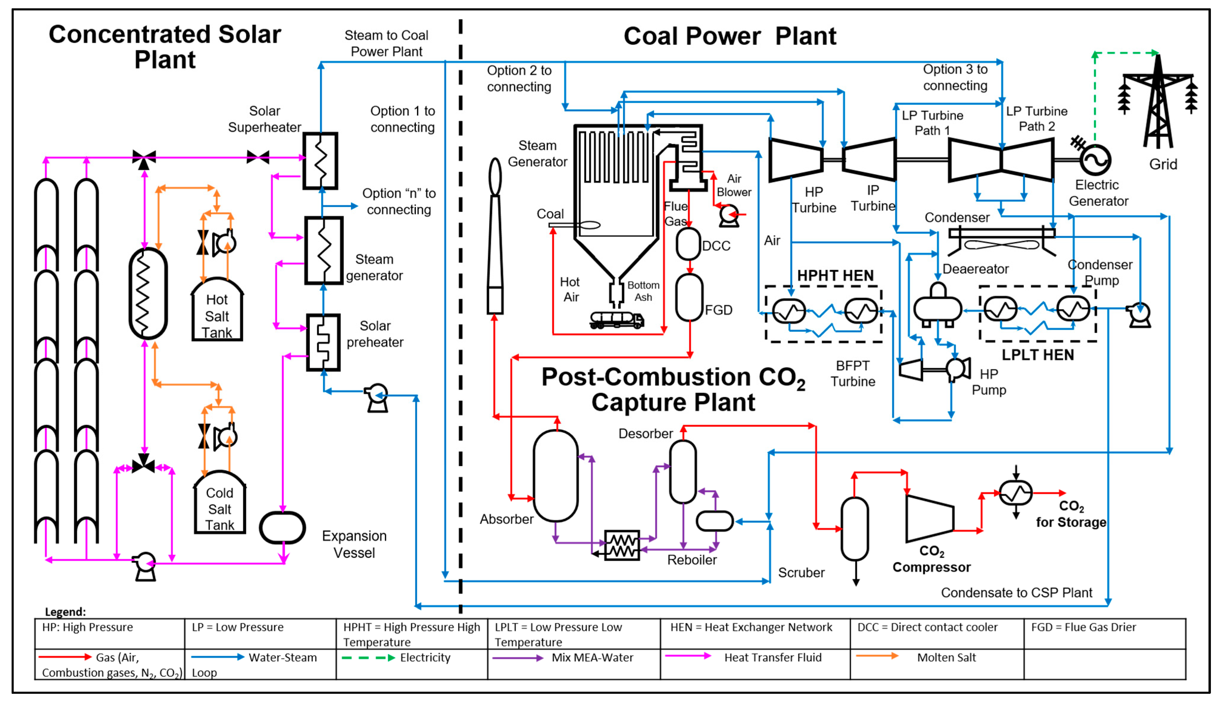 4. Thermosolar Plants Integrated into a Coal Power Plant with Post-Combustion CO2 Capture