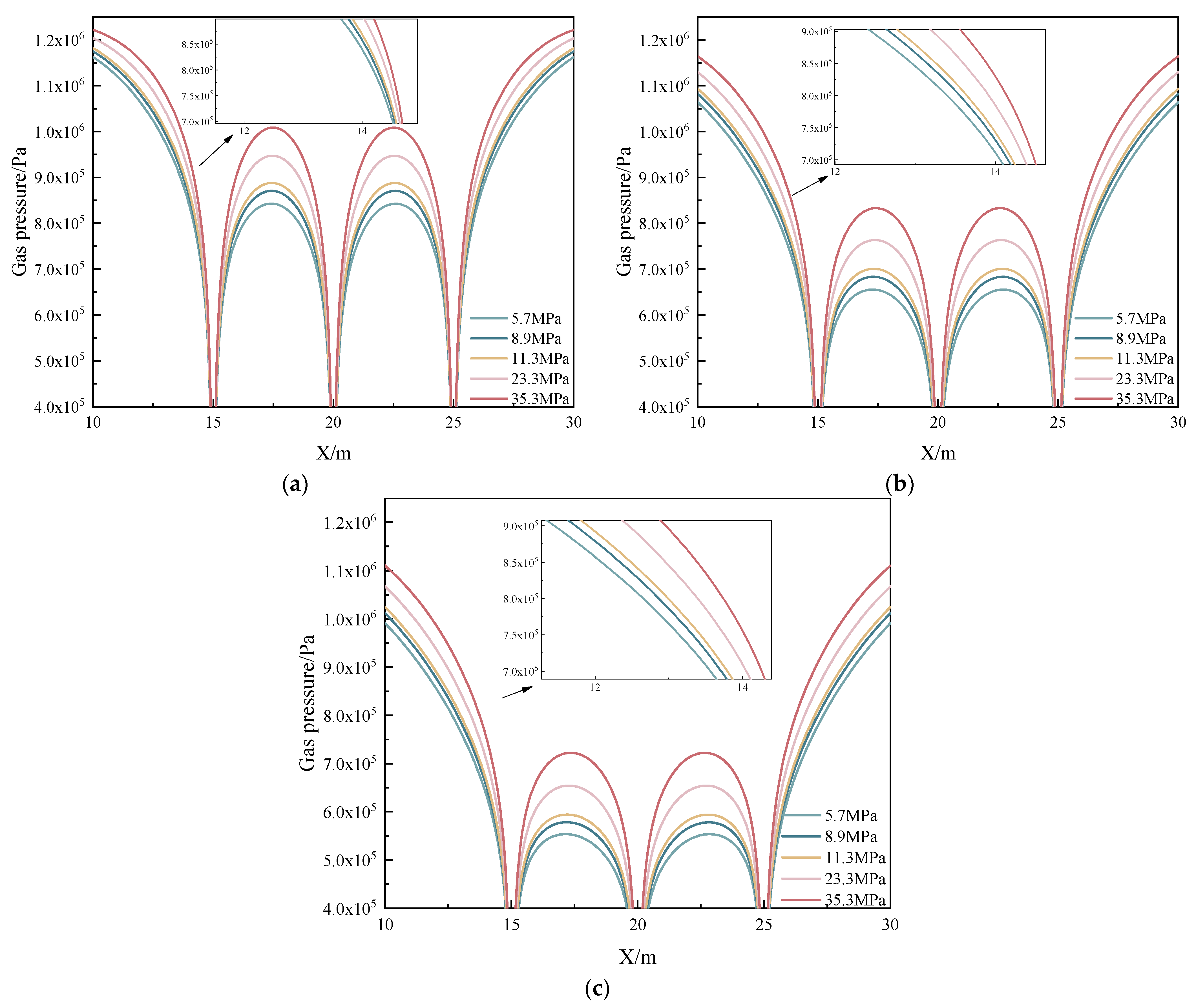 3.3.2. Impact of Stress on Gas Pressure