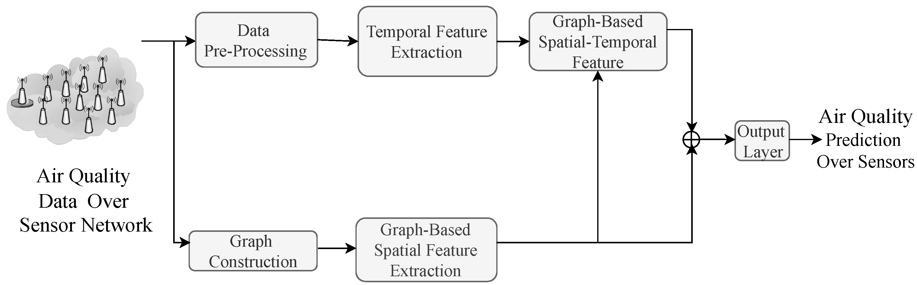 Figure 1. The framework of graph spatio-temporal fusion-based air quality prediction model.