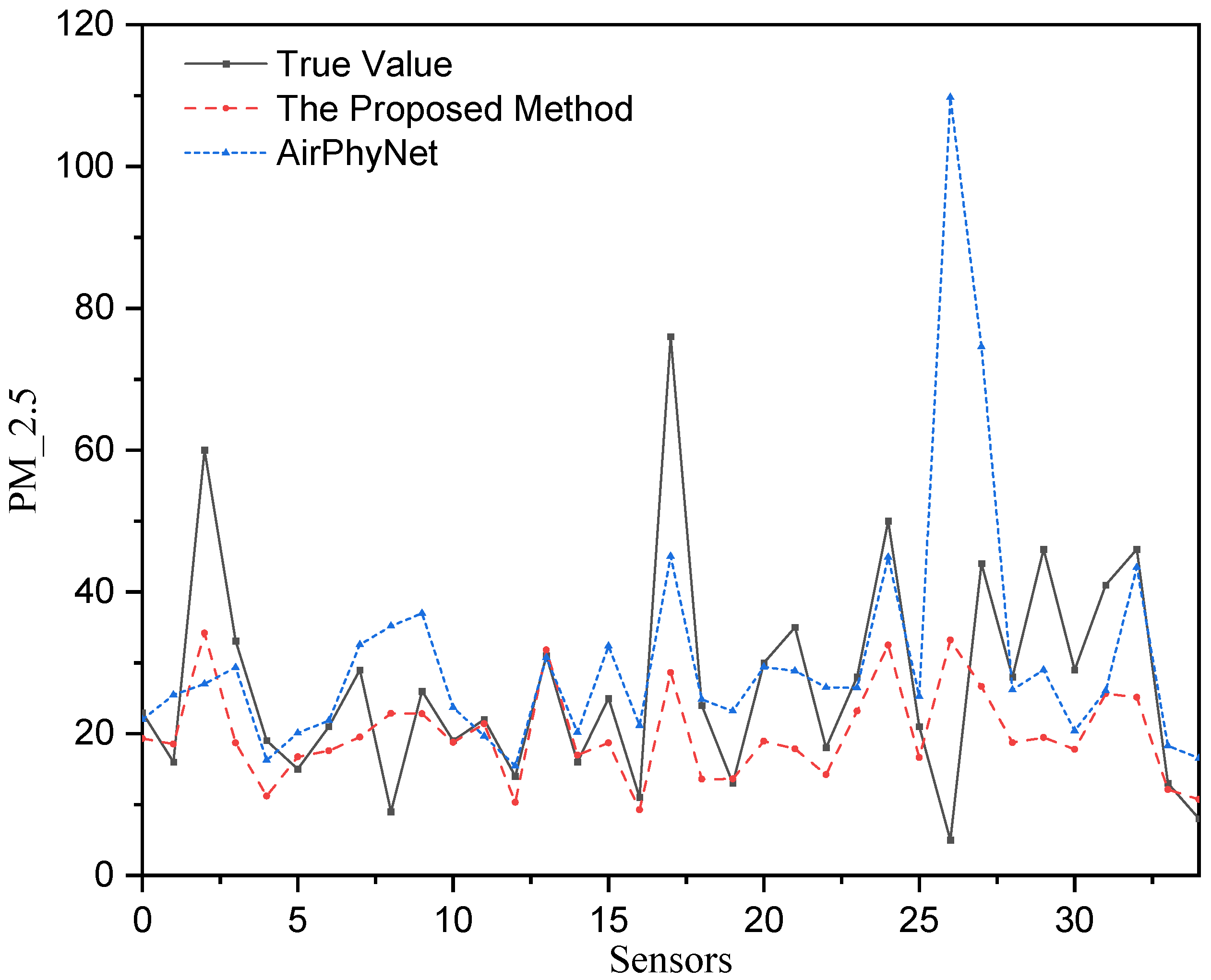 Common air pollutants include various substances such as gases, dust, smoke, and odors that can cause health and environmental problems. One primary concern is particulate matter (PM), with PM2.5 referring to fine particulate matter with a diameter of 2.5  μm or less. Cardiovascular disease, respiratory illnesses, and cancer can all be caused by exposure to fine particulate matter [1]. The monitoring of real-time air quality and the forecasting of the air quality index are attracting more and more attention. Pollution forecasts help decision-makers to implement pollution control measures in a timely manner, alert vulnerable populations, protect public health, and formulate sustainable policies to mitigate environmental damages. Many efforts have been made to predict air quality. These include physics-driven models, data-driven models, graph neural network-based models, and physics-informed neural network models.