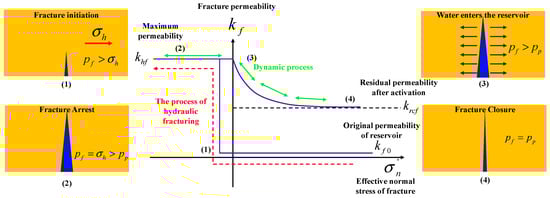 The hydraulic aperture of a fracture under varying stress conditions can be calculated by the following Equations (11)–(13).