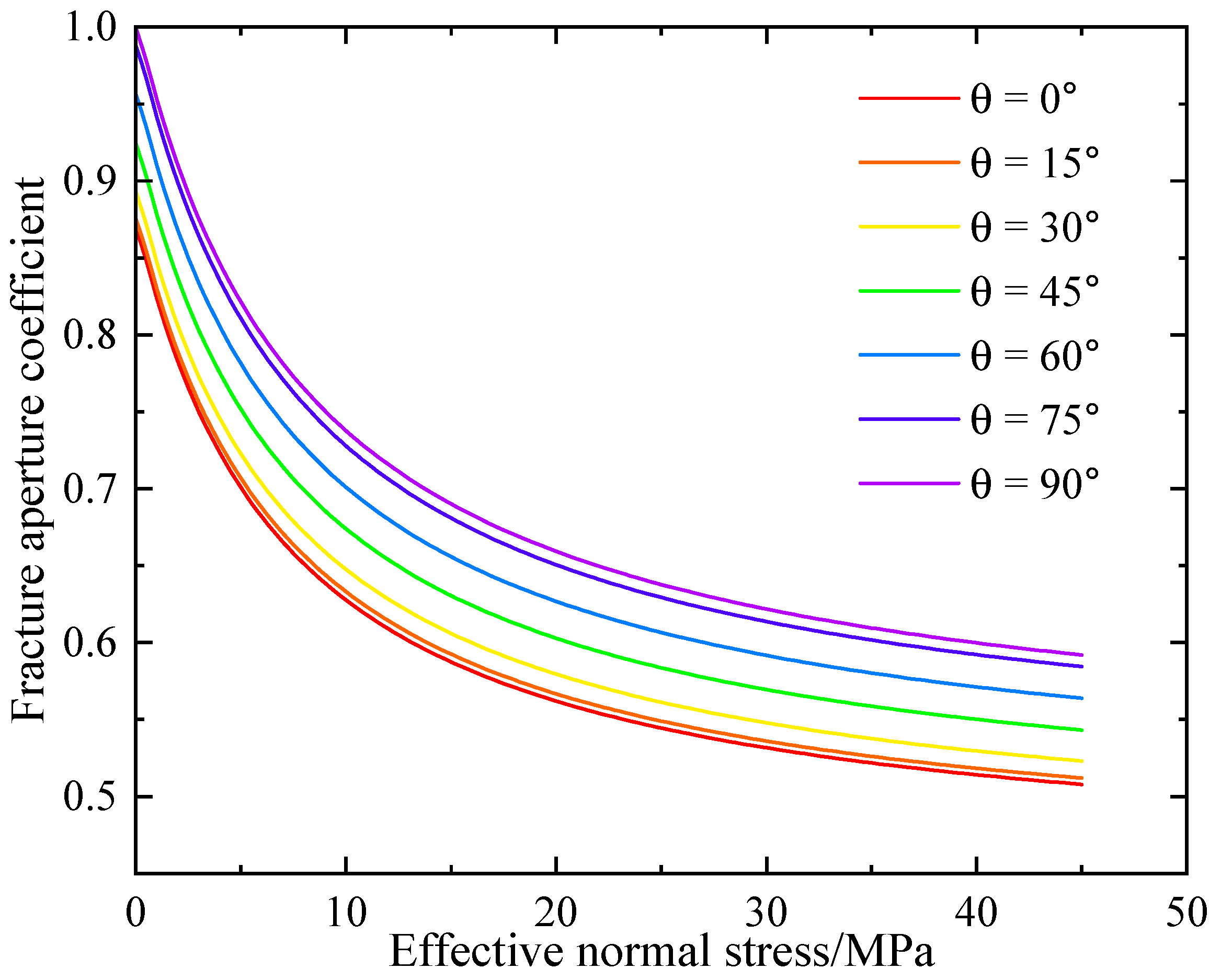 Under normal stress, the closure behavior of a fracture exhibits a nonlinear hyperbolic characteristic. Therefore, based on the Barton-Bandis model, a relationship between normal stiffness and effective normal stress can be derived (Equation (3)) [].