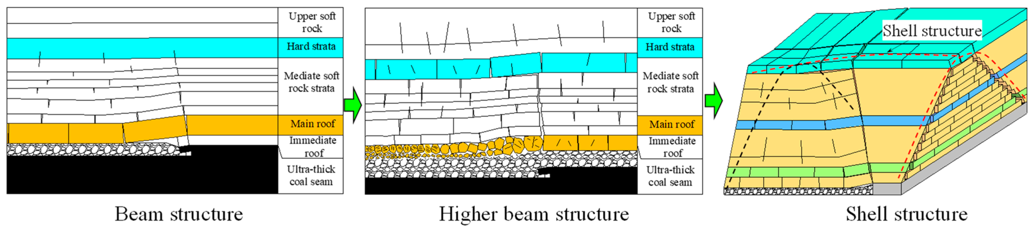 - Yu, B.; Zhu, W.B.; Li, Z.; Gao, R.; Liu, J.R. Mechanism of the instability of strata structure in far field for super-thick coal seam mining. J. China Coal Soc. 2018, 43, 2398–2407. [Google Scholar]