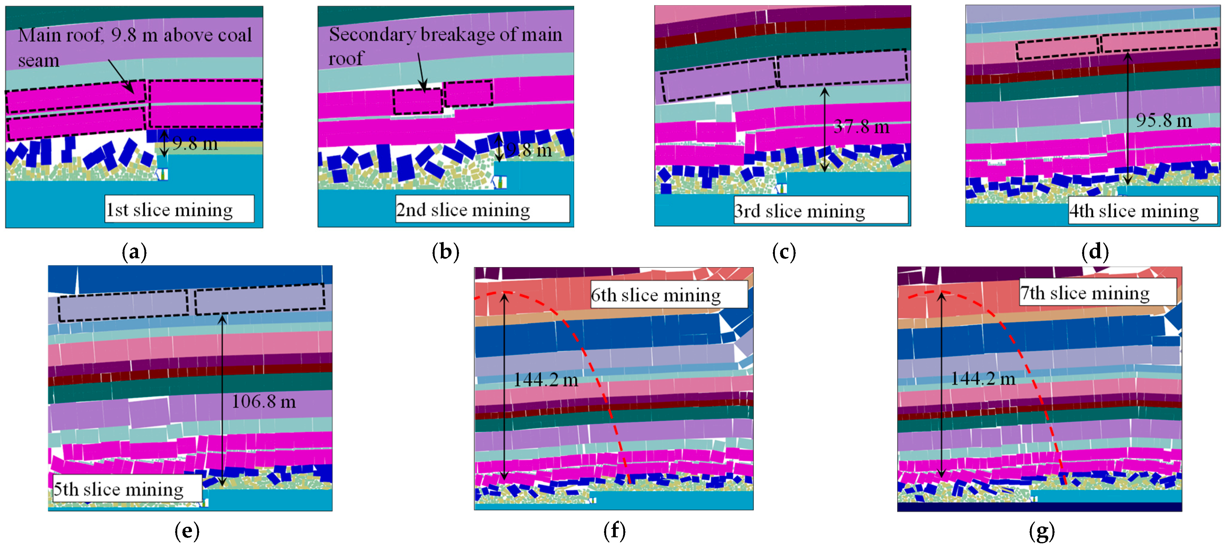 2.3. Evolution Process of Overlying Strata Structure in Multi-Slice Mining of Ultra-Thick Coal Seam