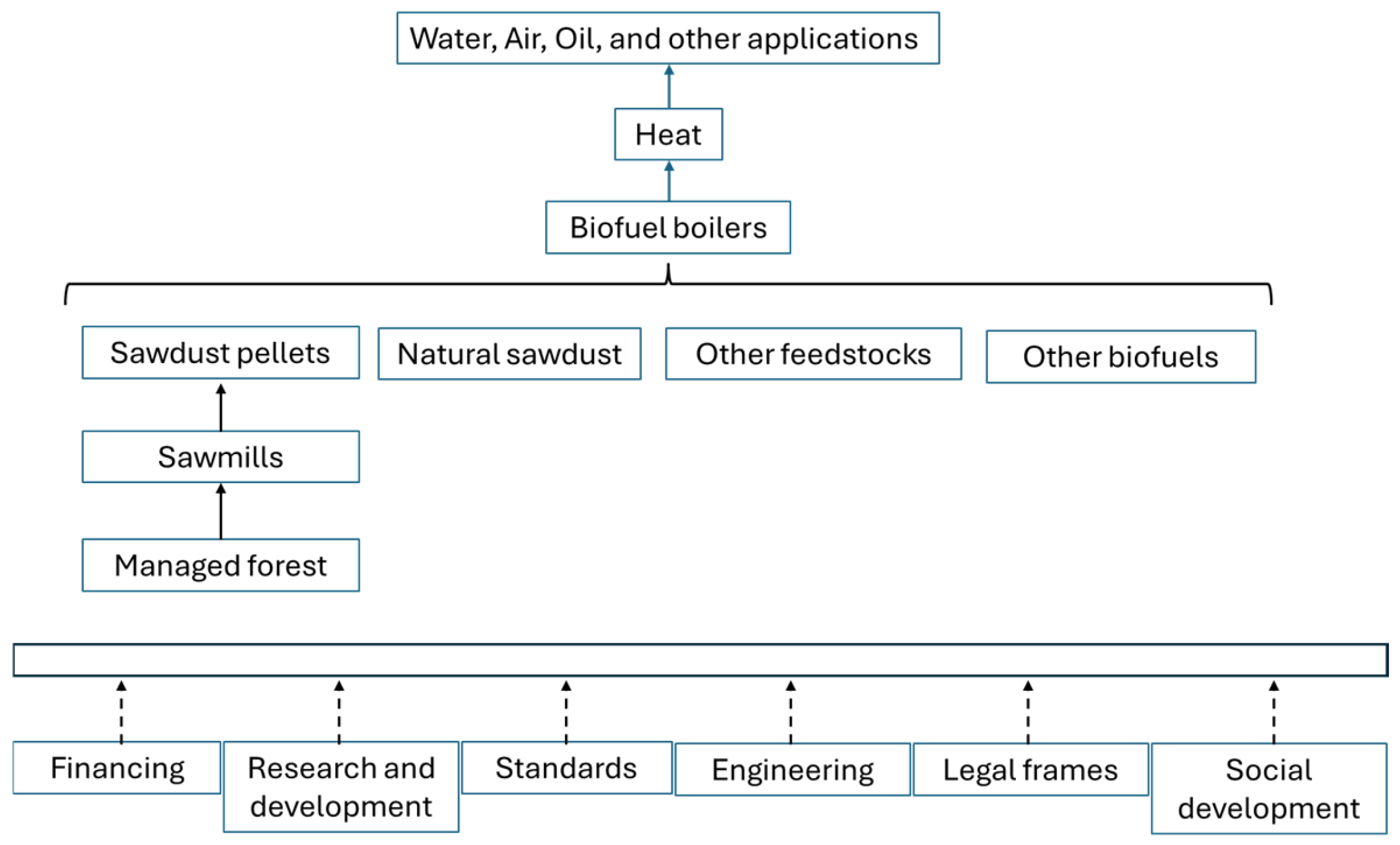 | Explore | Position sawdust pellet as a key energetic solution, diversifying the energy mix., New business models for sawdust pellets, Sawdust integration into the circular economy |