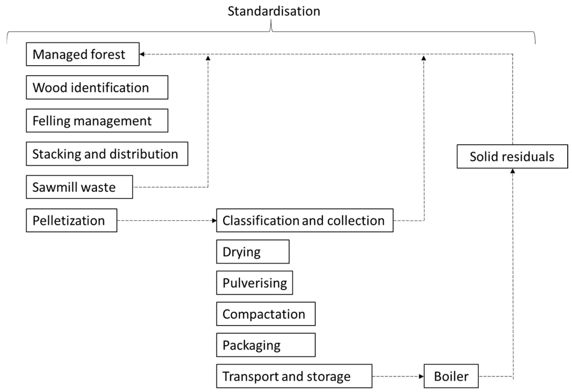 | Threats | Presence of impurities, Pellet fragility, Ash and Solid Waste Management, Raw Material Variability and its Logistics Implications | [74,100,101,102] |