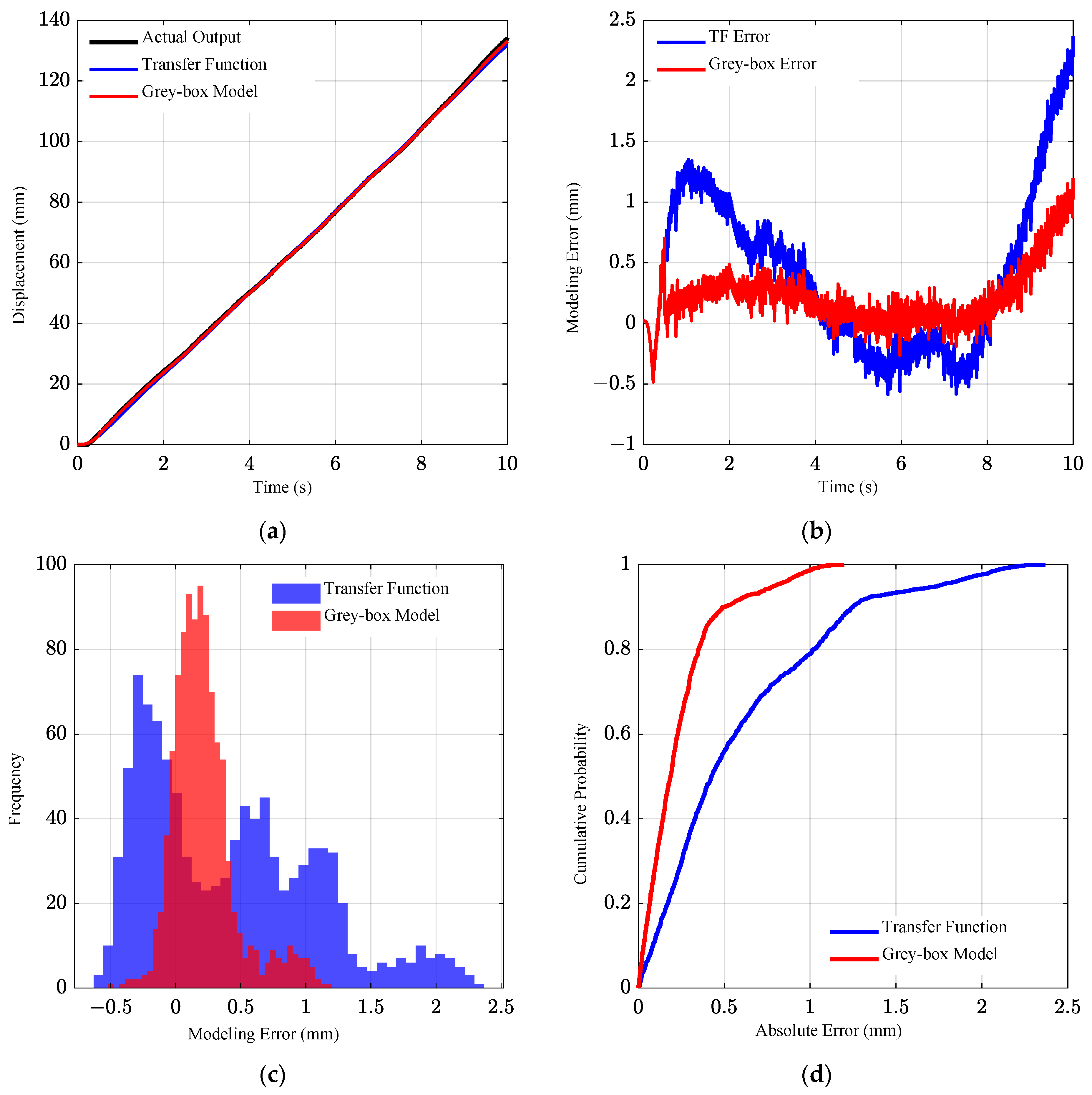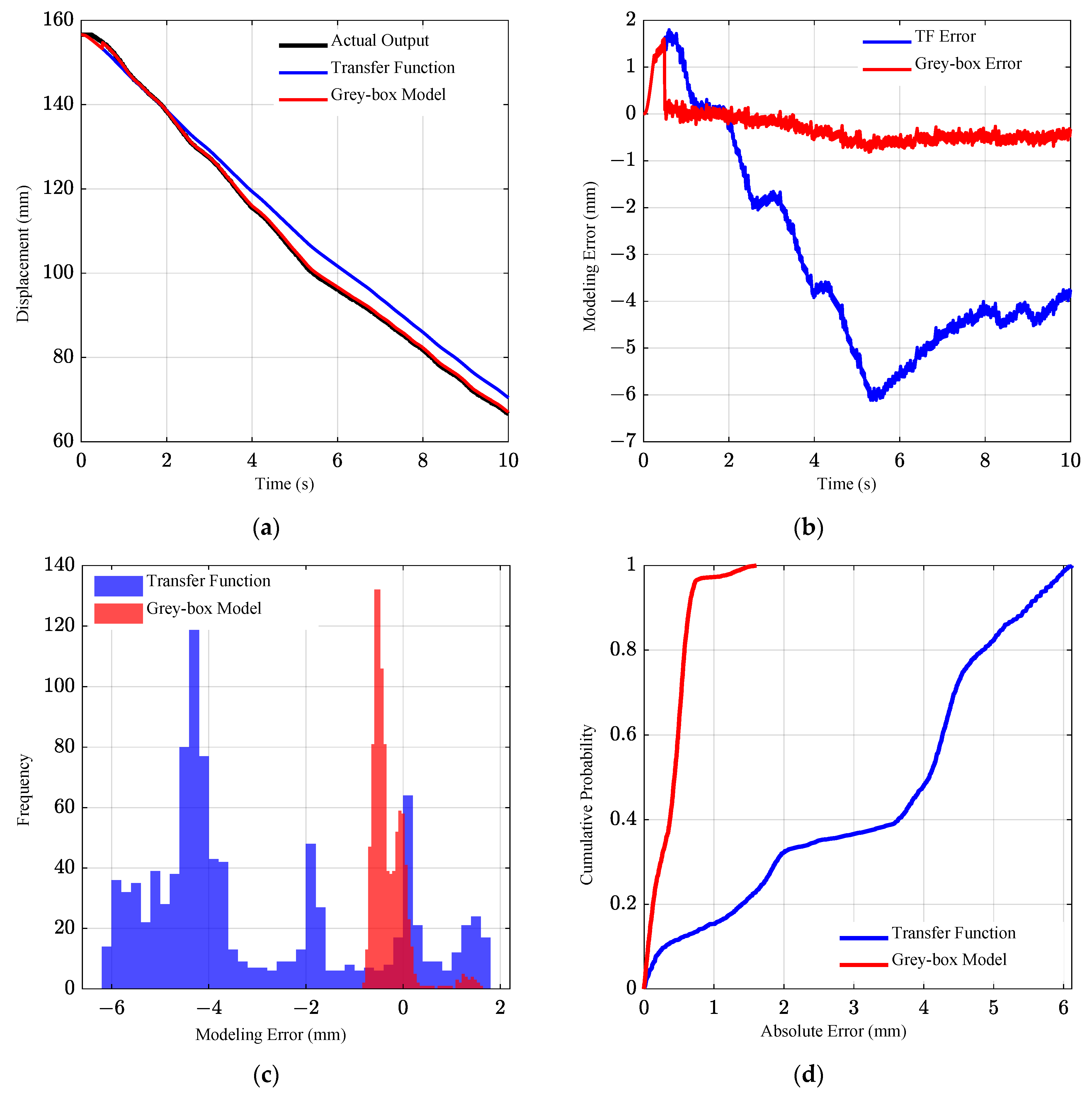 - Baseline Transfer Function Model: The identification process was optimized using all 16 dynamic test datasets (totaling 16 × 1001 = 16,016 sample points) to determine the optimal parameter that minimizes the overall root mean square error between the output of the benchmark transfer function model and the actual system output across the entire dataset.