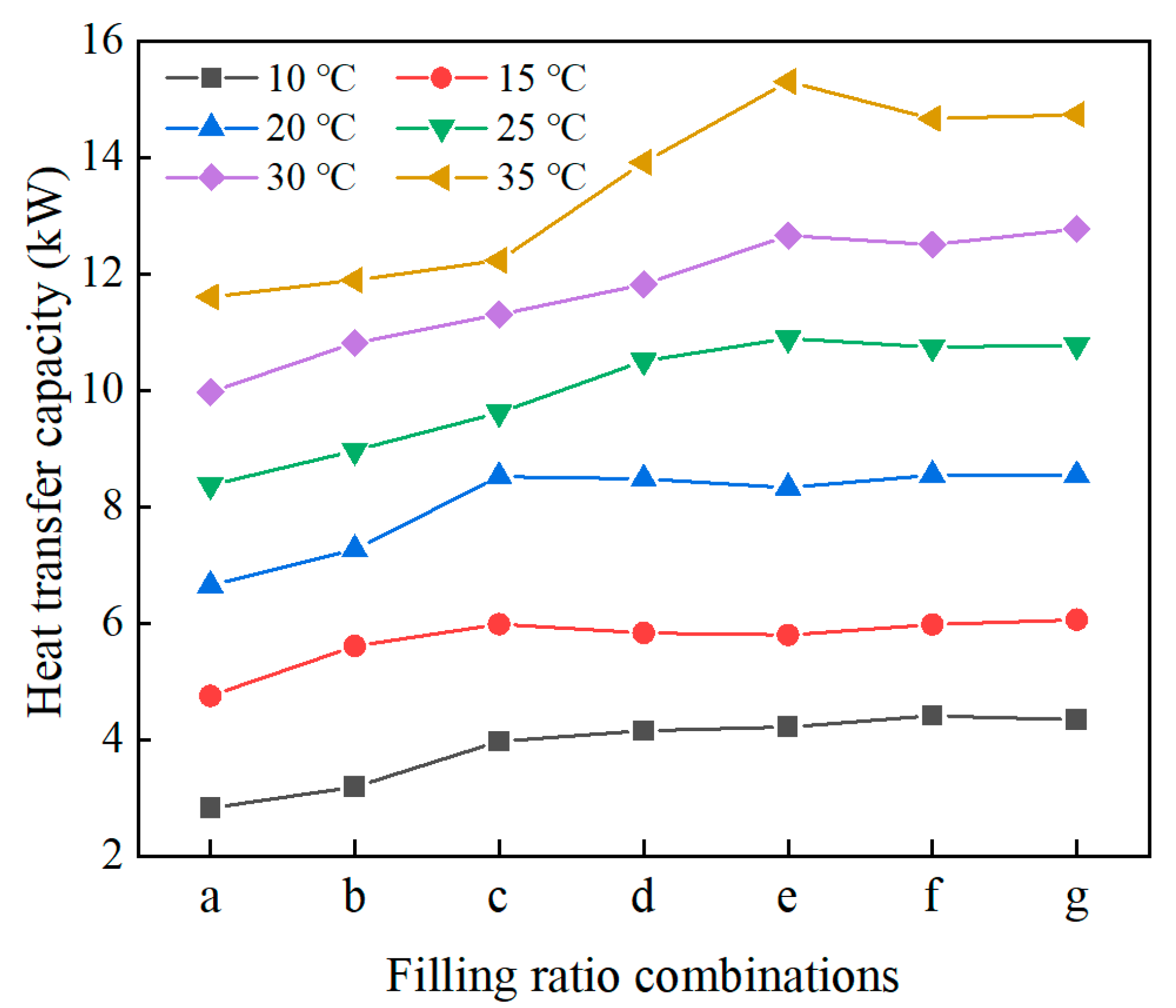 4.4.2. Effects of Filling Ratio Combinations on SGHP Performance