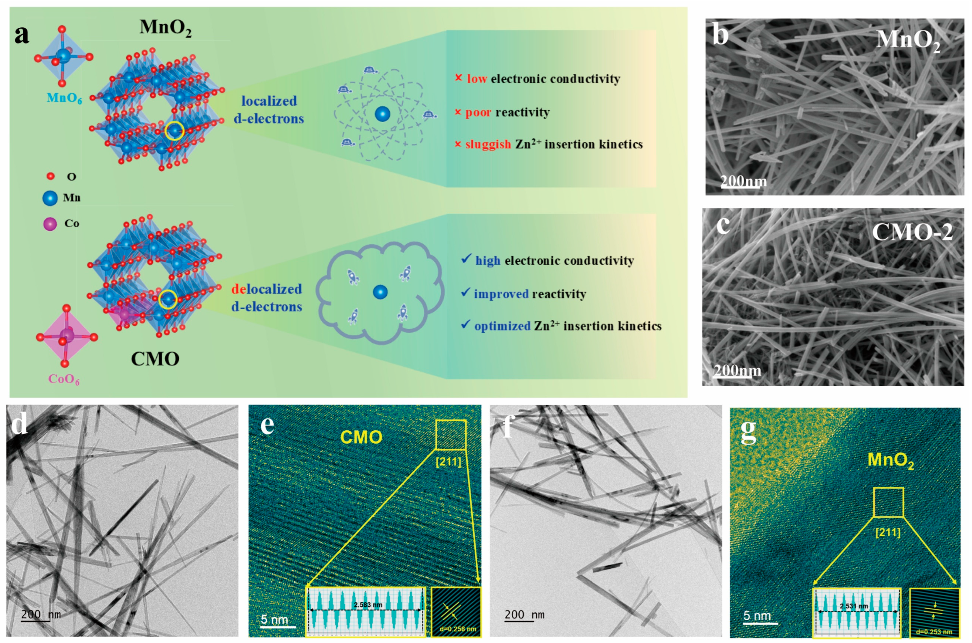 - Chen, X.; Xu, Z.; Guo, S.; Sun, B.; Li, Q.; Meng, Q.; Wei, F.; Qi, J.; Sui, Y.; Cao, P. Oxygen Vacancy-Rich Cobalt-Doped MnO2 Nanorods for Zn Ion Batteries. ACS Appl. Mater. Interfaces 2025, 17, 12074–12084. [Google Scholar] [CrossRef] [PubMed]