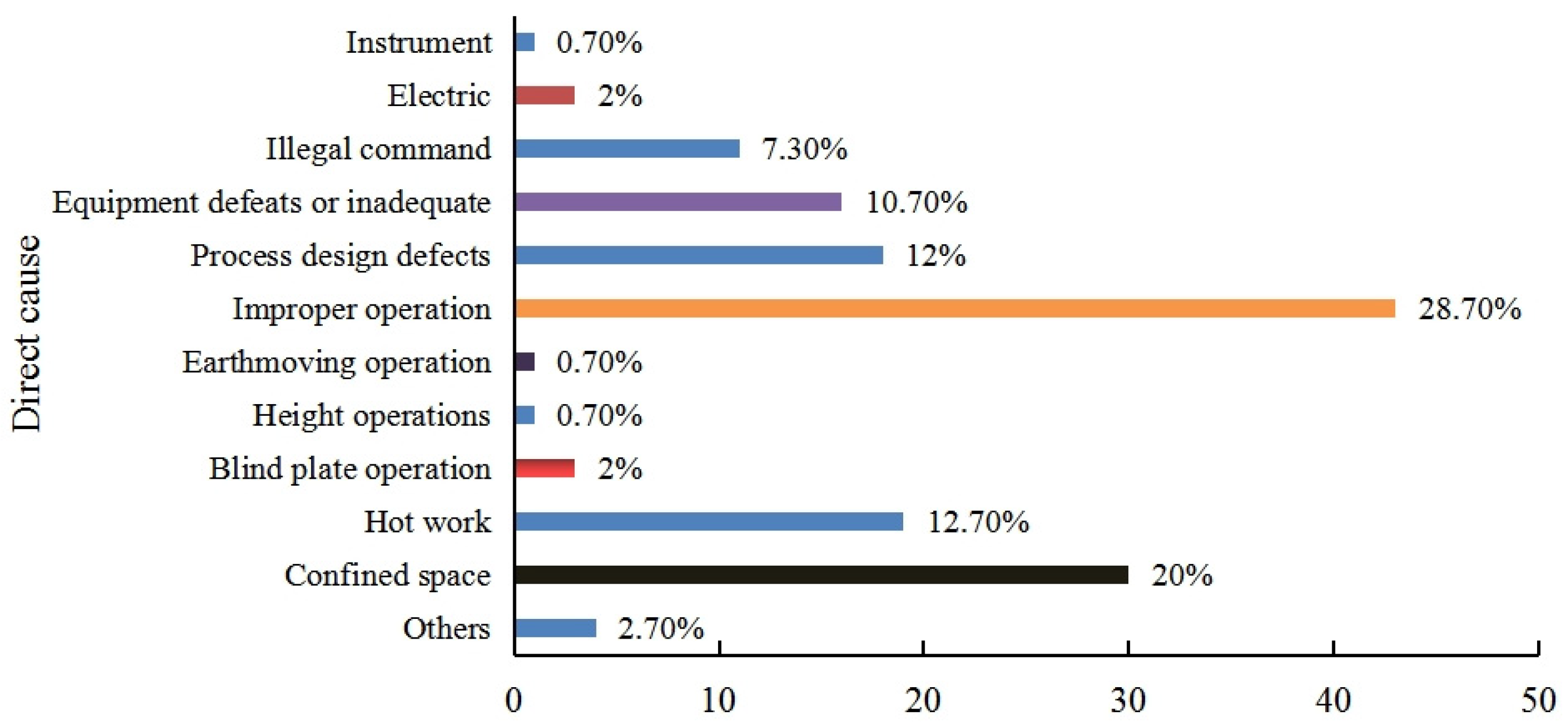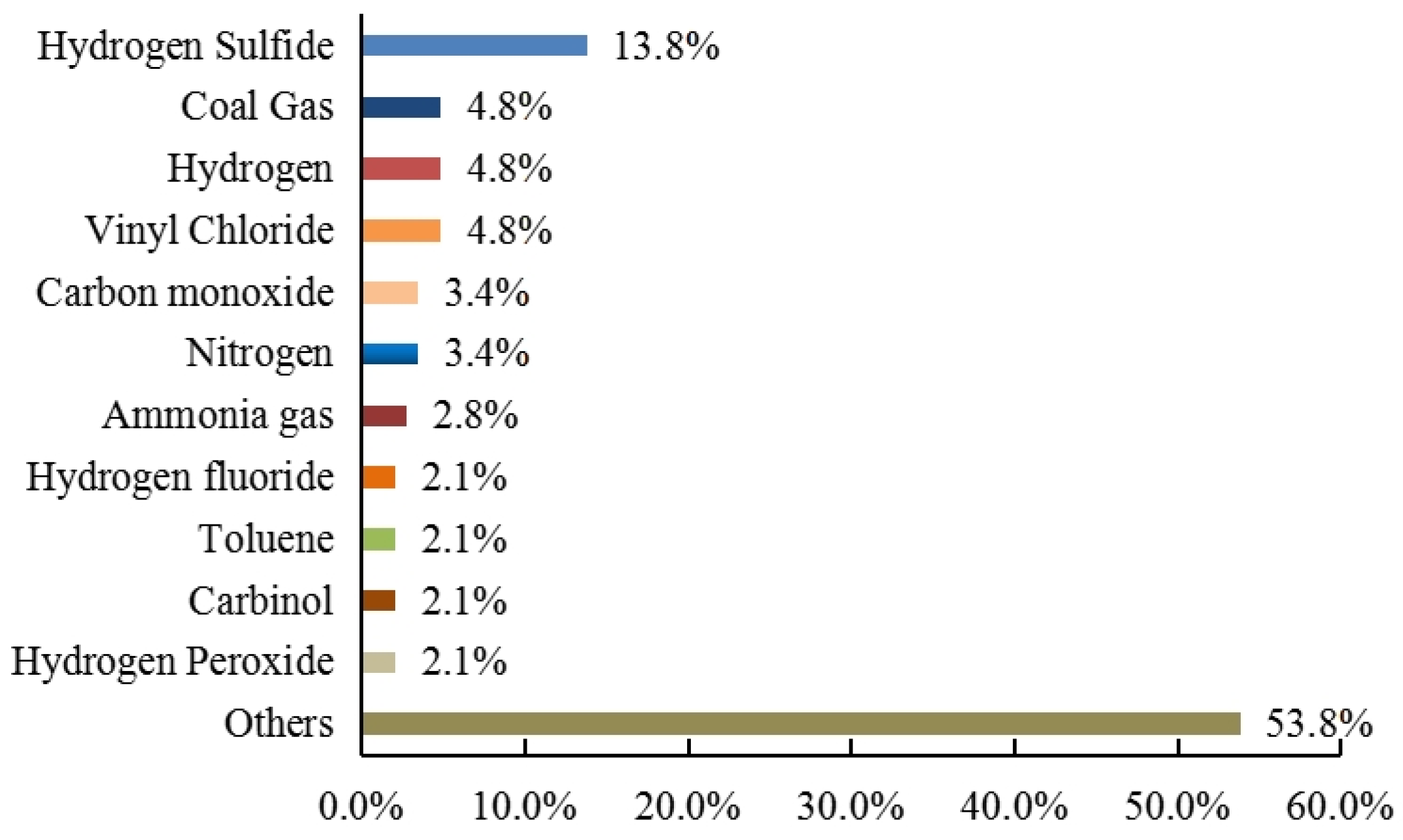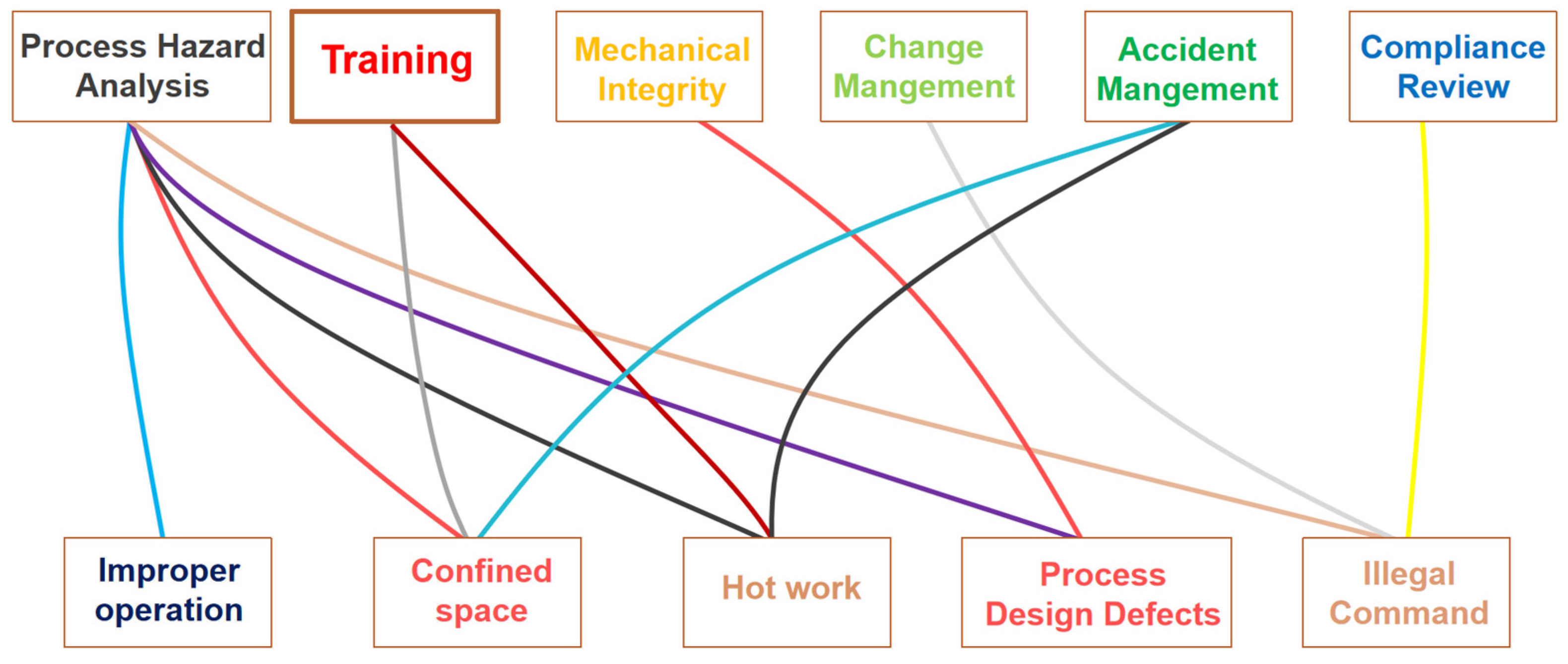 - Training. Training is a core element of process safety management, with specific requirements established by numerous countries and regulatory authorities. For instance, the Occupational Safety and Health Law mandates that enterprises and production units provide safety education and training to employees. The former State Administration of Work Safety issued regulations on enterprise safety training, requiring the establishment of safety training systems in compliance with relevant laws and administrative regulations. Many accident investigation reports cite insufficient personnel training or poor training quality as indirect causes of accidents. Among the 150 severe accidents analyzed in this study, 85.5% involved training-related issues. A typical case is the “1.6” gas poisoning accident at Xinjiang Dahuangshan Hongji Coke Co., Ltd. The investigation report identified the inexperience of frontline managers and employees (mostly new recruits from colleges and vocational schools) and their lack of on-site operational practice as indirect causes. Thus, improving the effectiveness and quality of chemical safety training is an urgent priority for chemical enterprises.