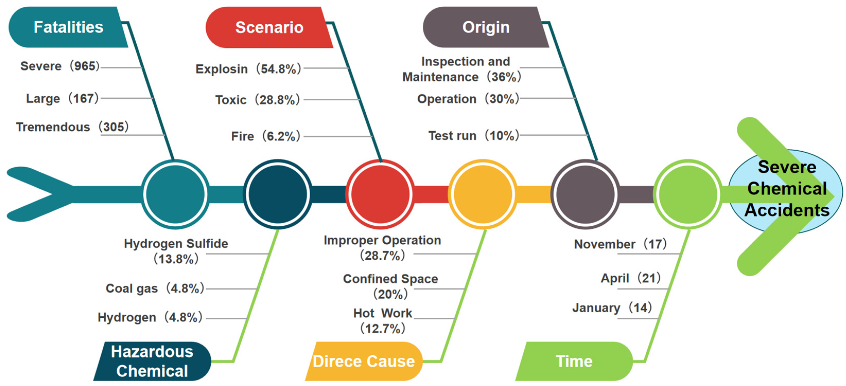 3.1.7. Direct Cause of the Severe Chemical Accidents