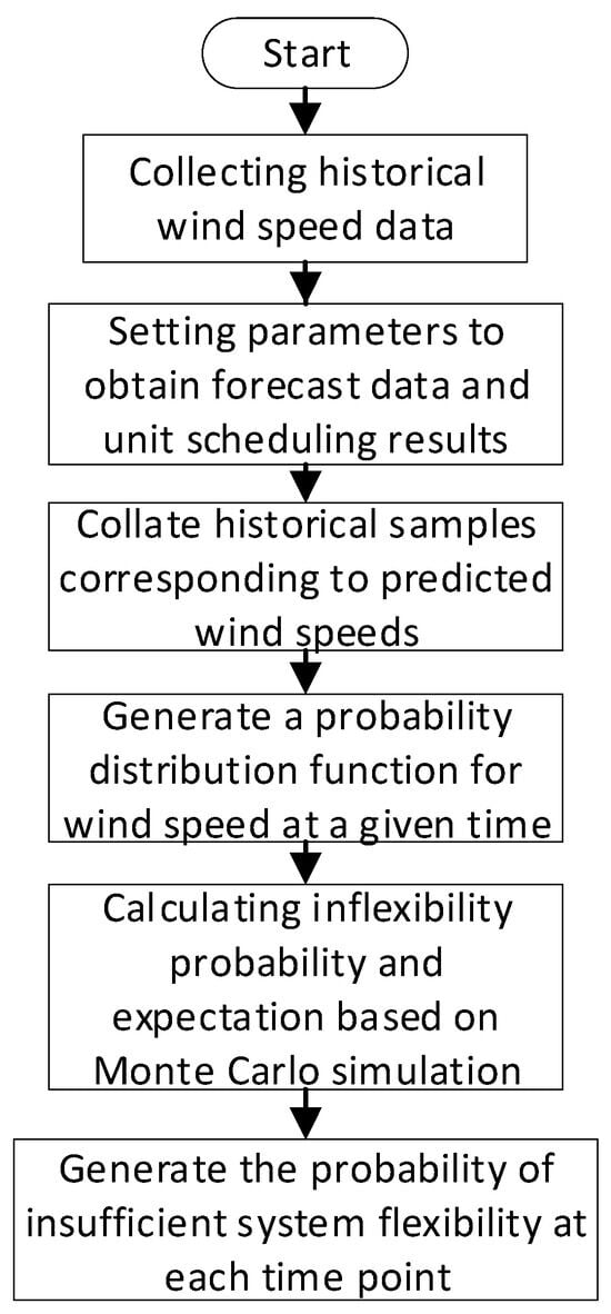 In order to quantify the risk of insufficient flexibility of the power system containing large-scale wind farms, the system flexibility assessment process is set up as follows, and the assessment process is shown in Figure 5.