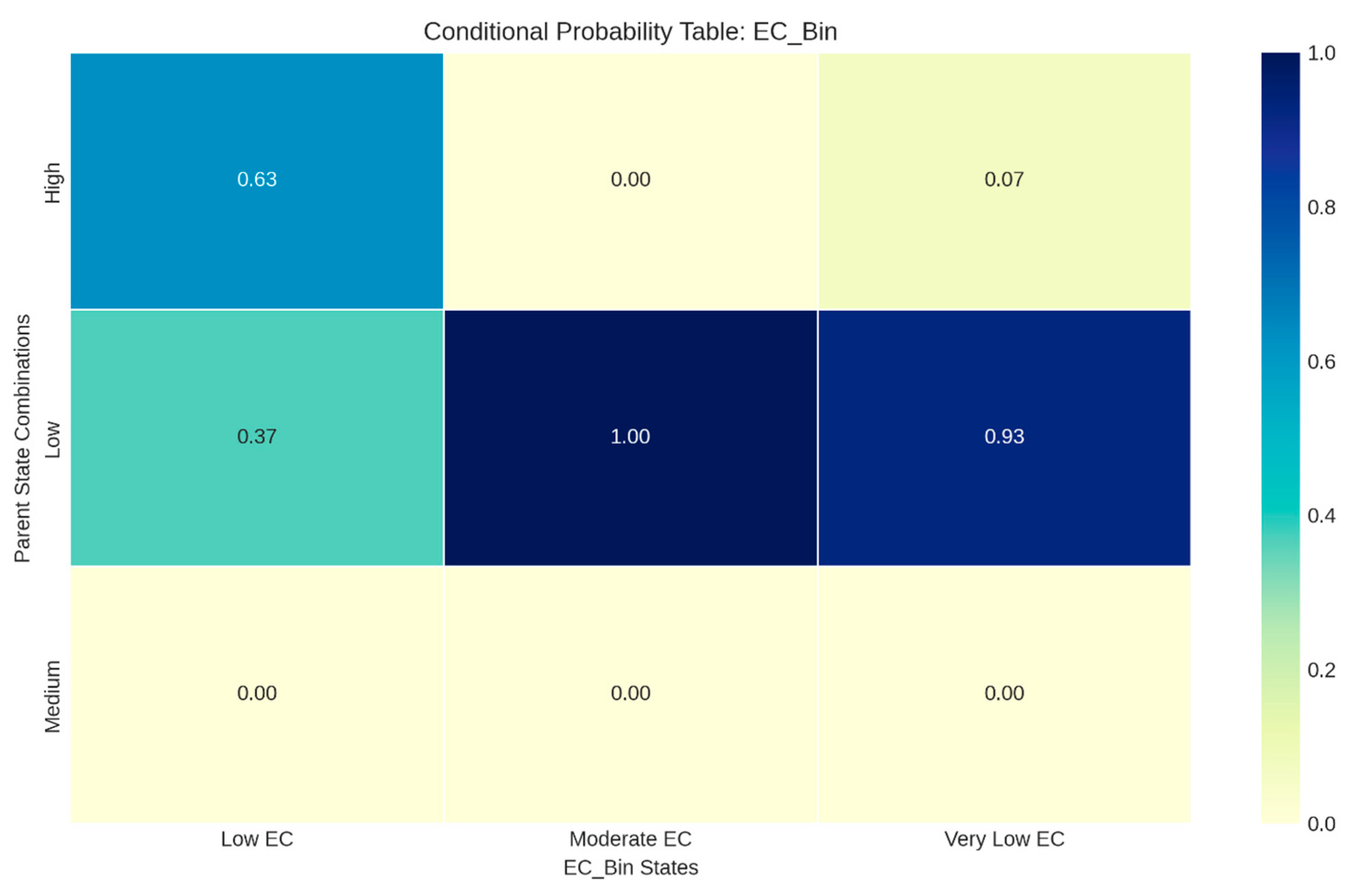 The Bayesian Network was implemented in Python 3.11. using the pgmpy library, which was used for the estimation of conditional probability distributions (CPDs) directly from the observed dataset [43].
