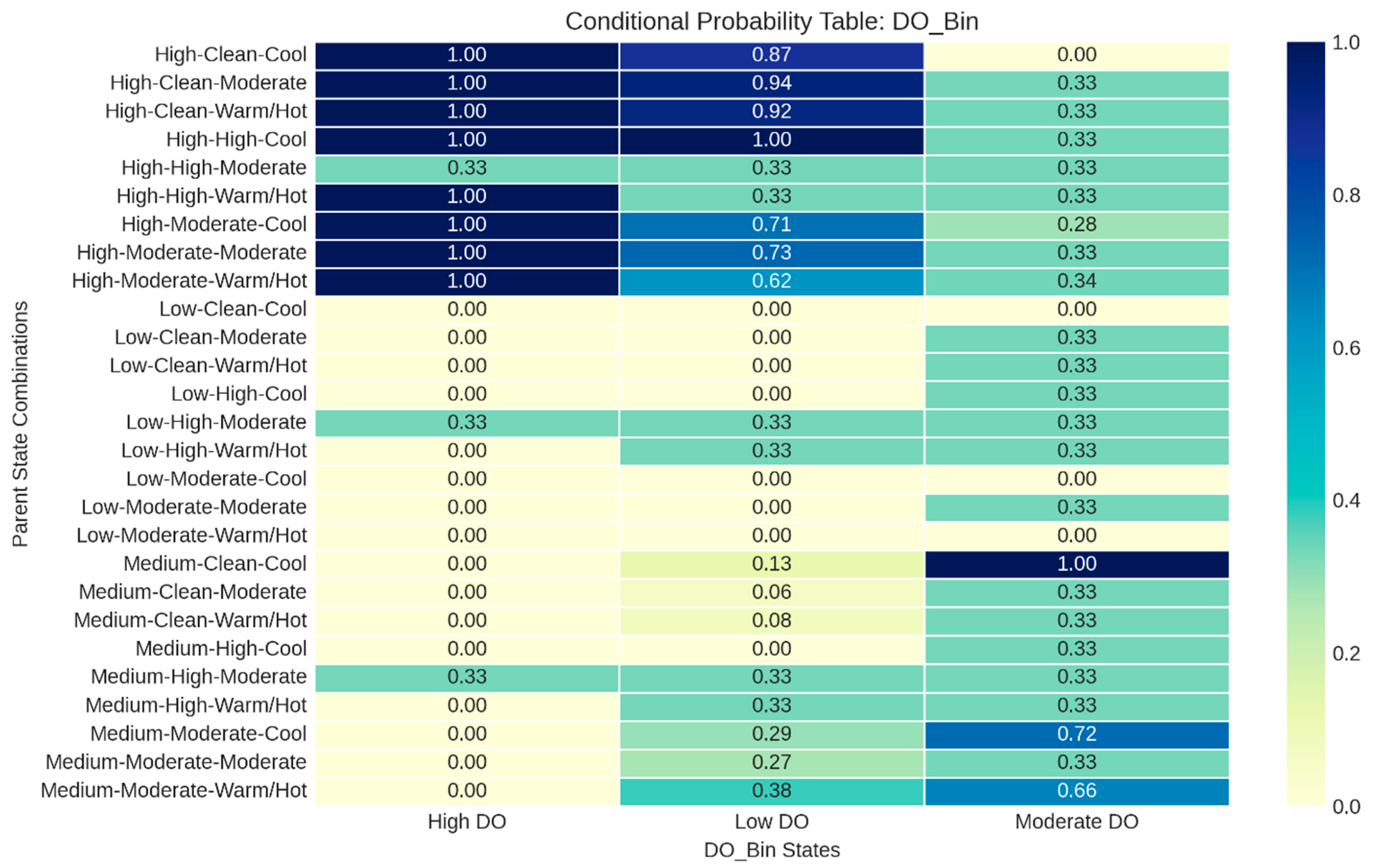 Overall, the BN approach offers a scalable and interpretable framework for assessing water quality risks, supporting adaptive management under variable climatic and hydrological conditions, and informing evidence-based policy interventions in dynamic river systems.