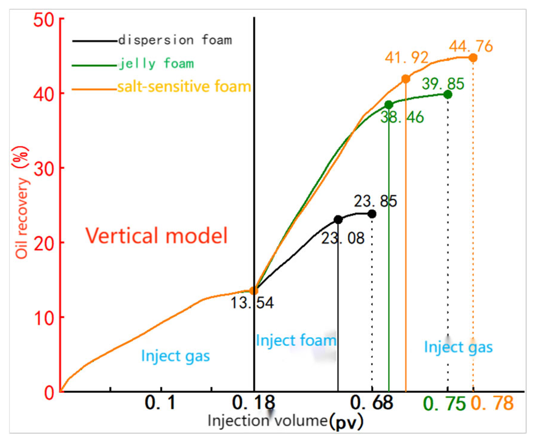 Foam has excellent channel-blocking capabilities and can block dominant flow channels during the displacement process, thereby expanding the sweep volume and effectively increasing the recovery factor. Yang et al. [