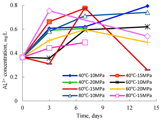 Variation in Al3+ concentration with reaction time under different temperature and pressure conditions.