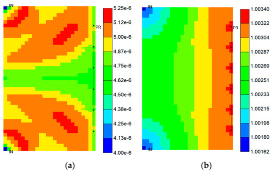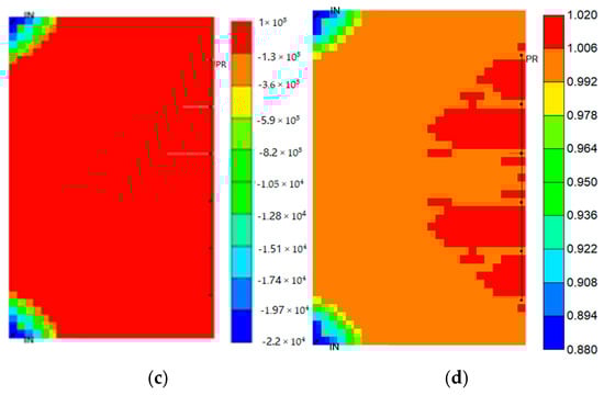 Changes in porosity and permeability at the end of water gas alternation oil recovery: (a) porosity variation in the matrix system; (b) permeability variation in the matrix system; (c) porosity variation in the fracture system; (d) permeability variation in the fracture system.