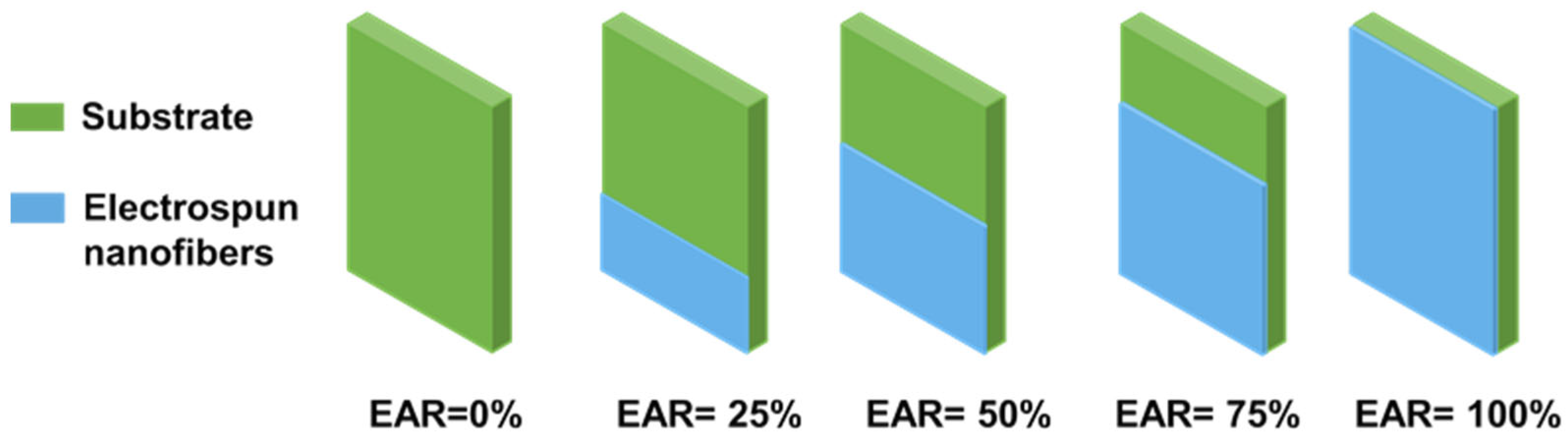 3.1. Effect of the Electrospinning Area Ratio