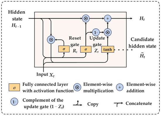 - Historical load feature extraction: The preprocessed historical load data is input into a GRU encoder. Taking advantage of the GRU’s ability to capture temporal patterns, deeper features in the historical data are extracted. The encoder’s final hidden state is used as the output.