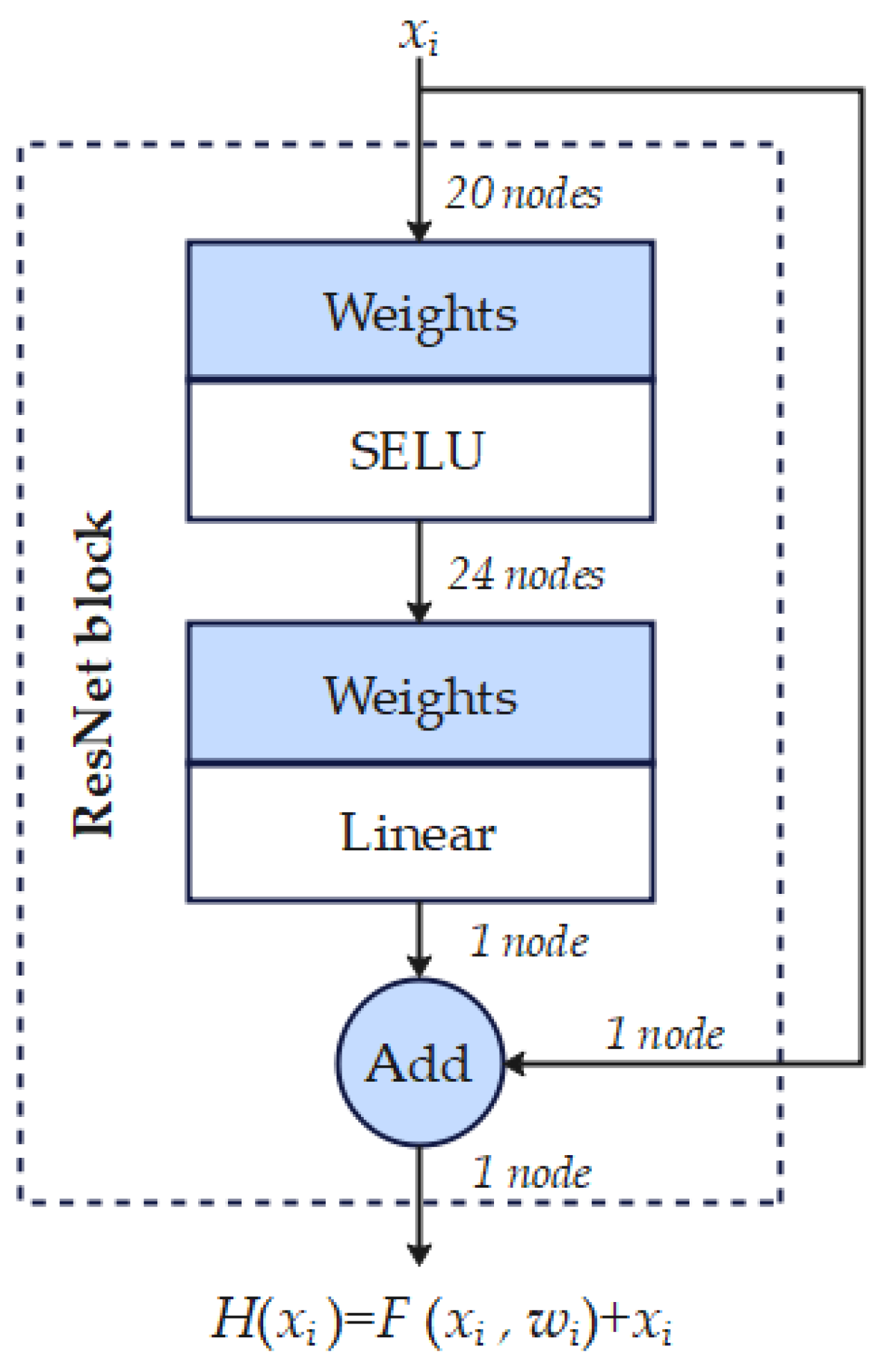 - The skip connections of ResNet block ensure that the model can converge stably and achieve improved prediction accuracy, even as network depth increases. This architecture allows the model to safely increase its depth, ensuring stable convergence and enhancing its capacity to extract complex features from the data.