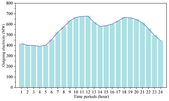 This paper adopts the northwest region of Yinchuan, Ningxia, China, as the simulation area, where solar and wind energy resources are abundant, and some DG-REBs have been built. On this basis, a DG-REB containing HES, WT, PV, and TP is configured. All data for the planning model mentioned in this paper originate from the DG-REB in the northwest region of Yinchuan city. Meteorological data such as solar radiation and wind speed are based on DG-REB observations, with a temporal resolution of 1 h, a spatial grid size of 31 km × 31 km, and a spatial resolution of 1 km × 1 km. The technical parameters of the required equipment are listed in Table 1. Contracted electricity, hydrogen, and carbon quota prices of the DG-REB are shown in Table 2. The contracted power transmission loads for each time period are illustrated in Figure 3.