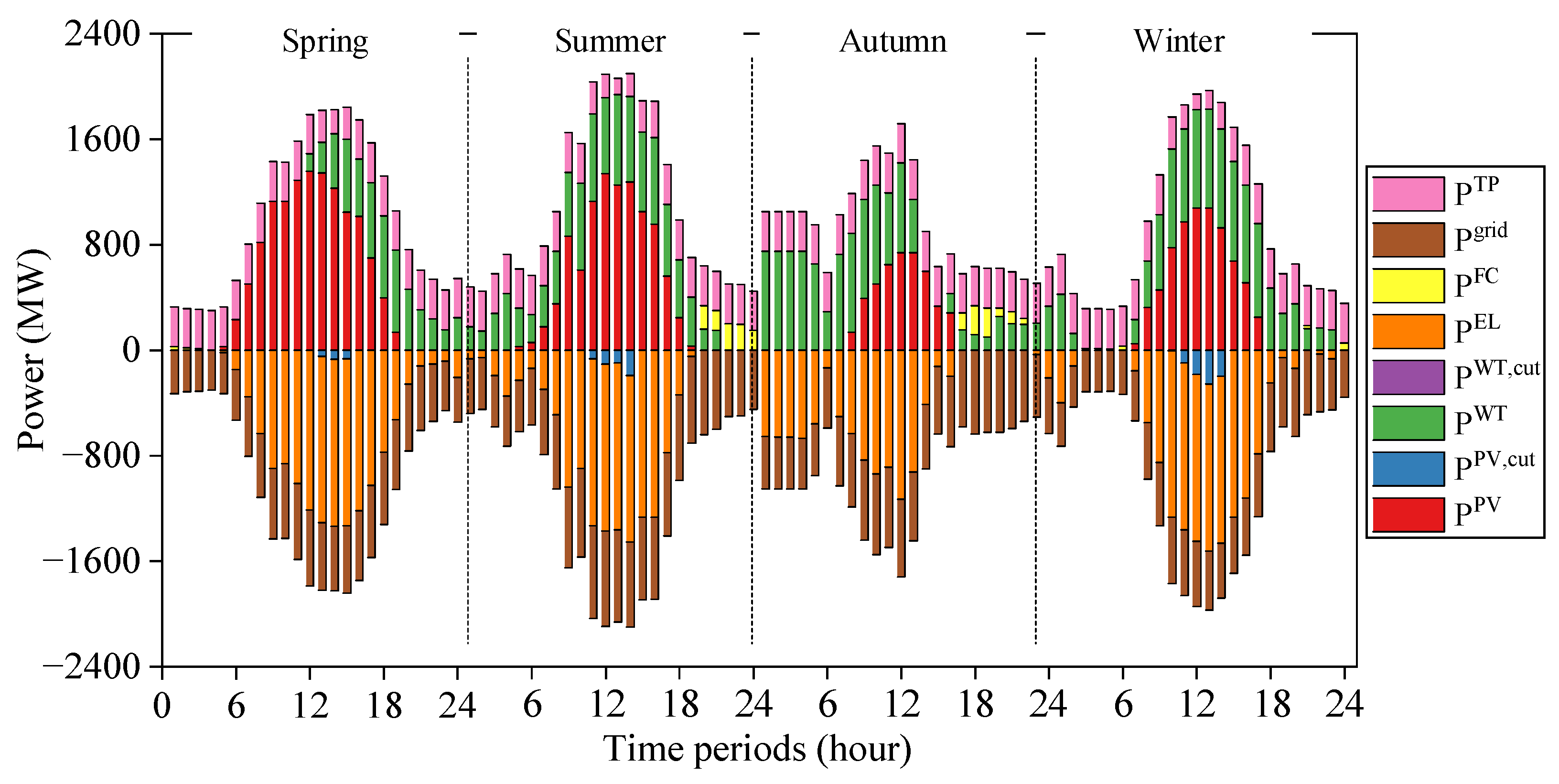 P t W T P t W T , c u t + P t P V P t P V , c u t + P t H F C = P t g r i d + P t E L