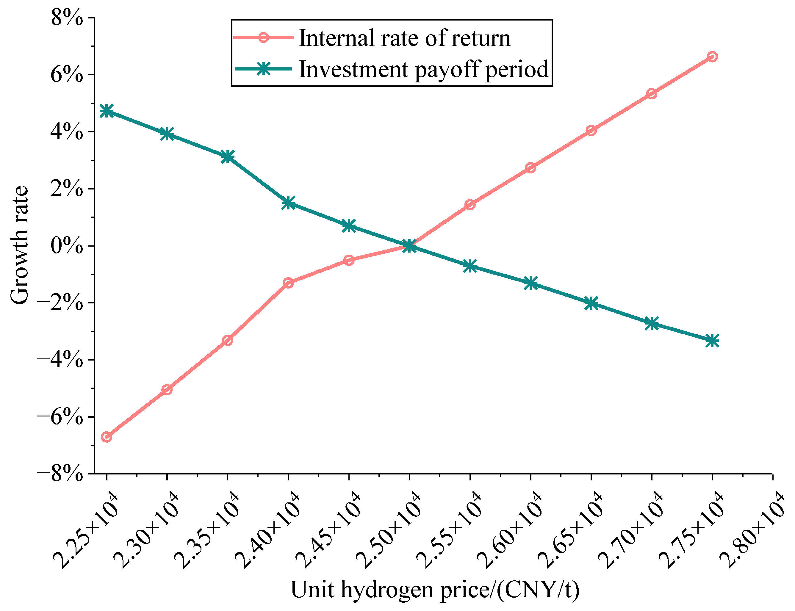 Figure 10. DG-REB investment payoff period and internal rate of return with different hydrogen prices.