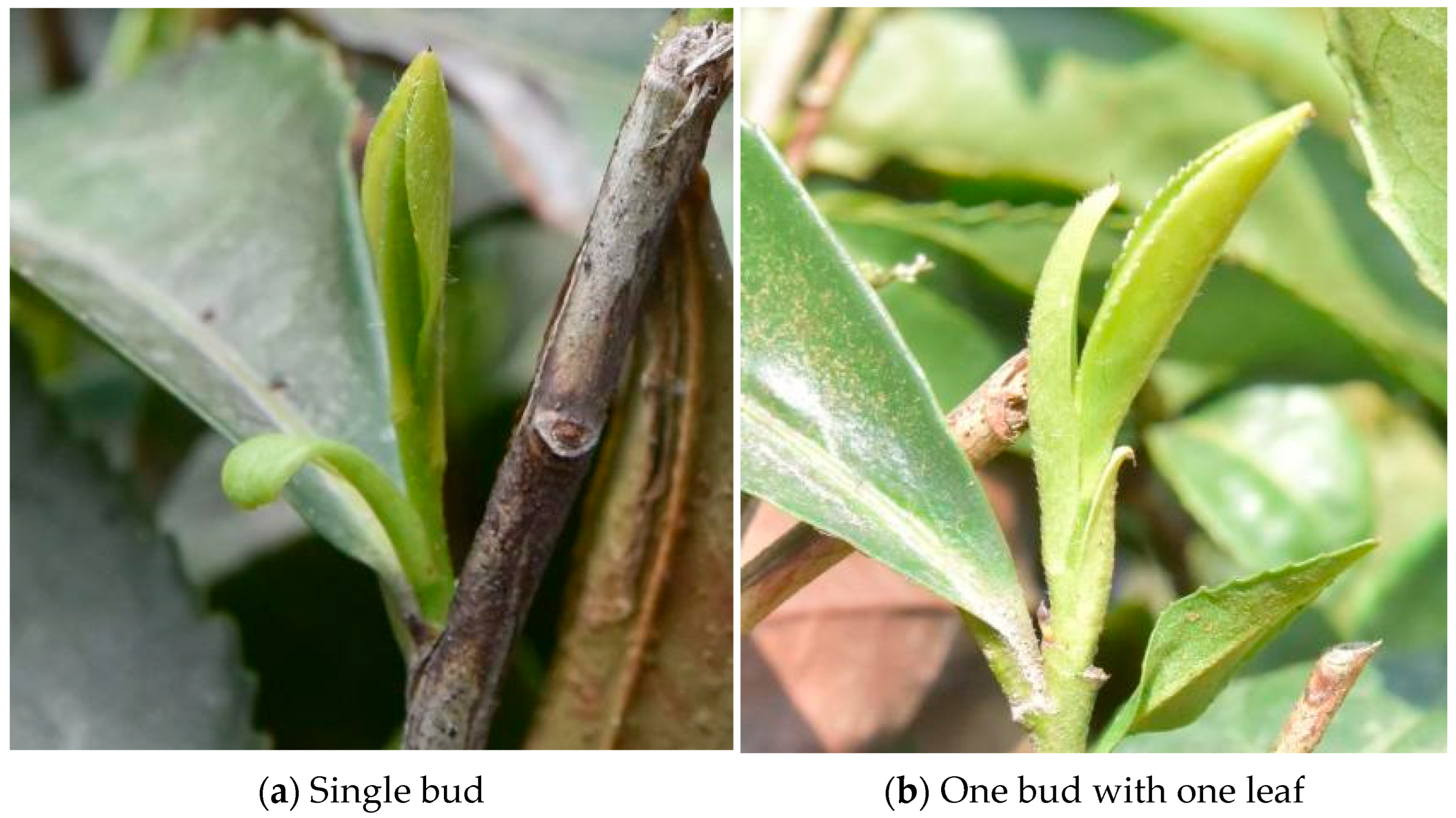 - Wang, Y. Study on Automatic Bud Recognition and Buds Classification System of JunMei Tea in Fujian Province. Master’s Thesis, Fujian Agriculture and Forestry University, Fuzhou, China, 2020. [Google Scholar]