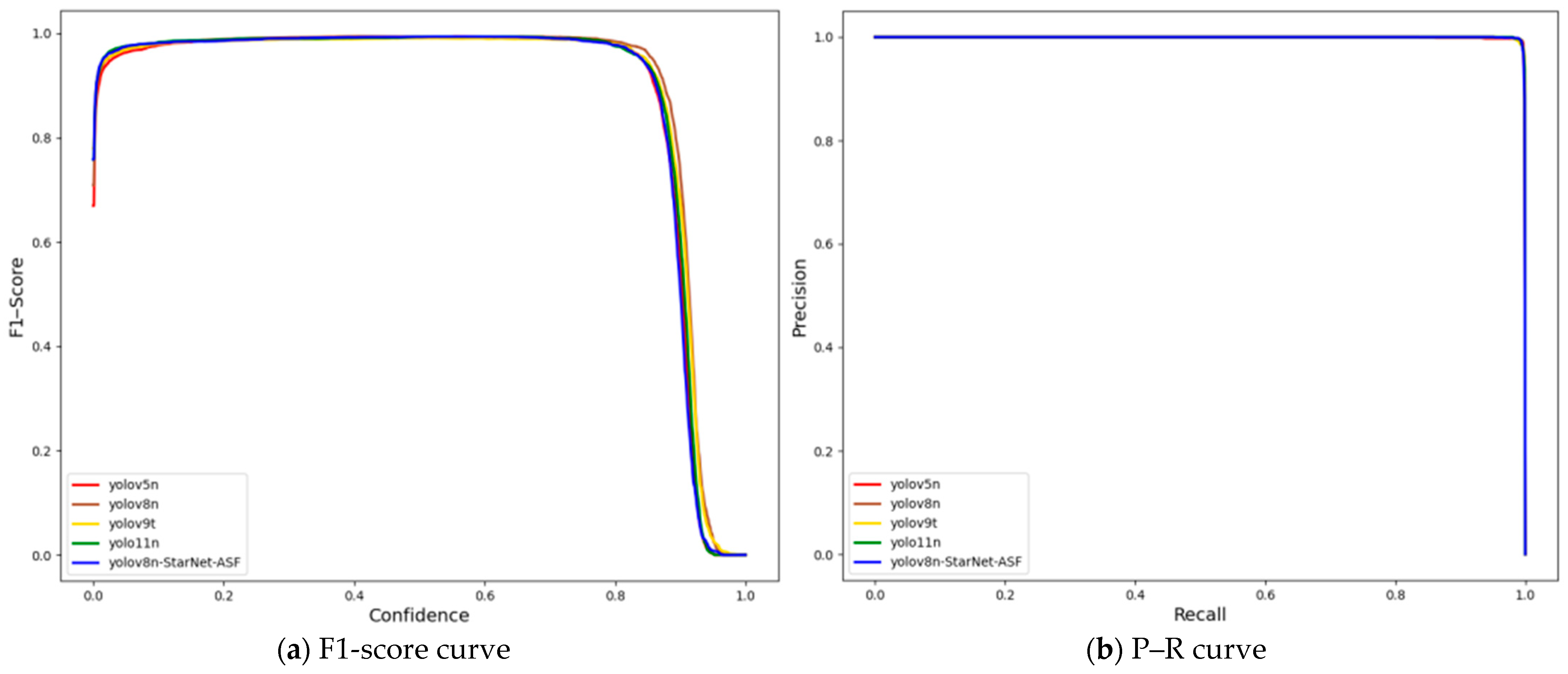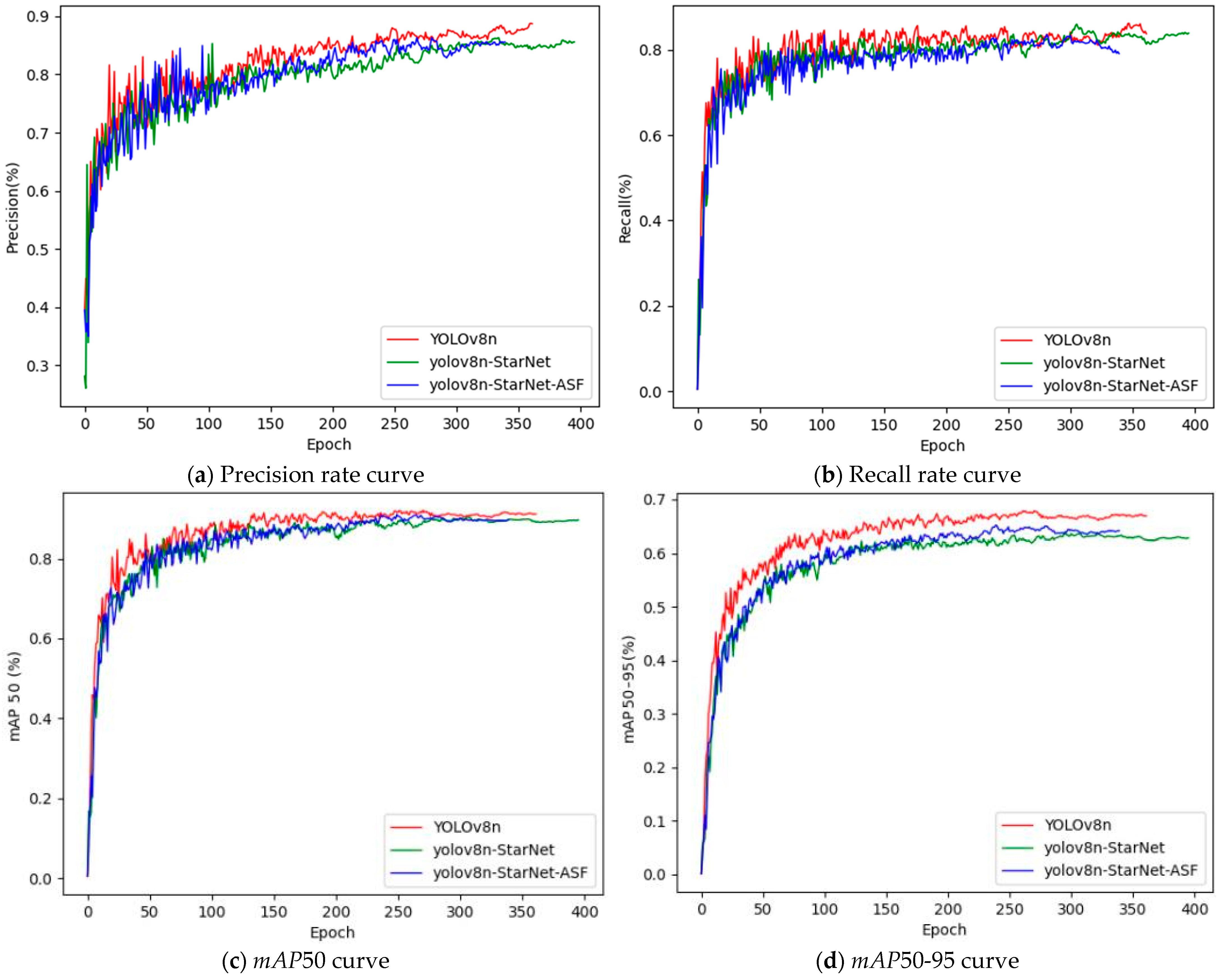 | Model | StarNet_s050 | ASF-YOLO | BiFPN | SEAM | Precision Rate/% | Recall Rate/% | F1-Score/% | mAP/% | Calculation Load/GFLOPs | |