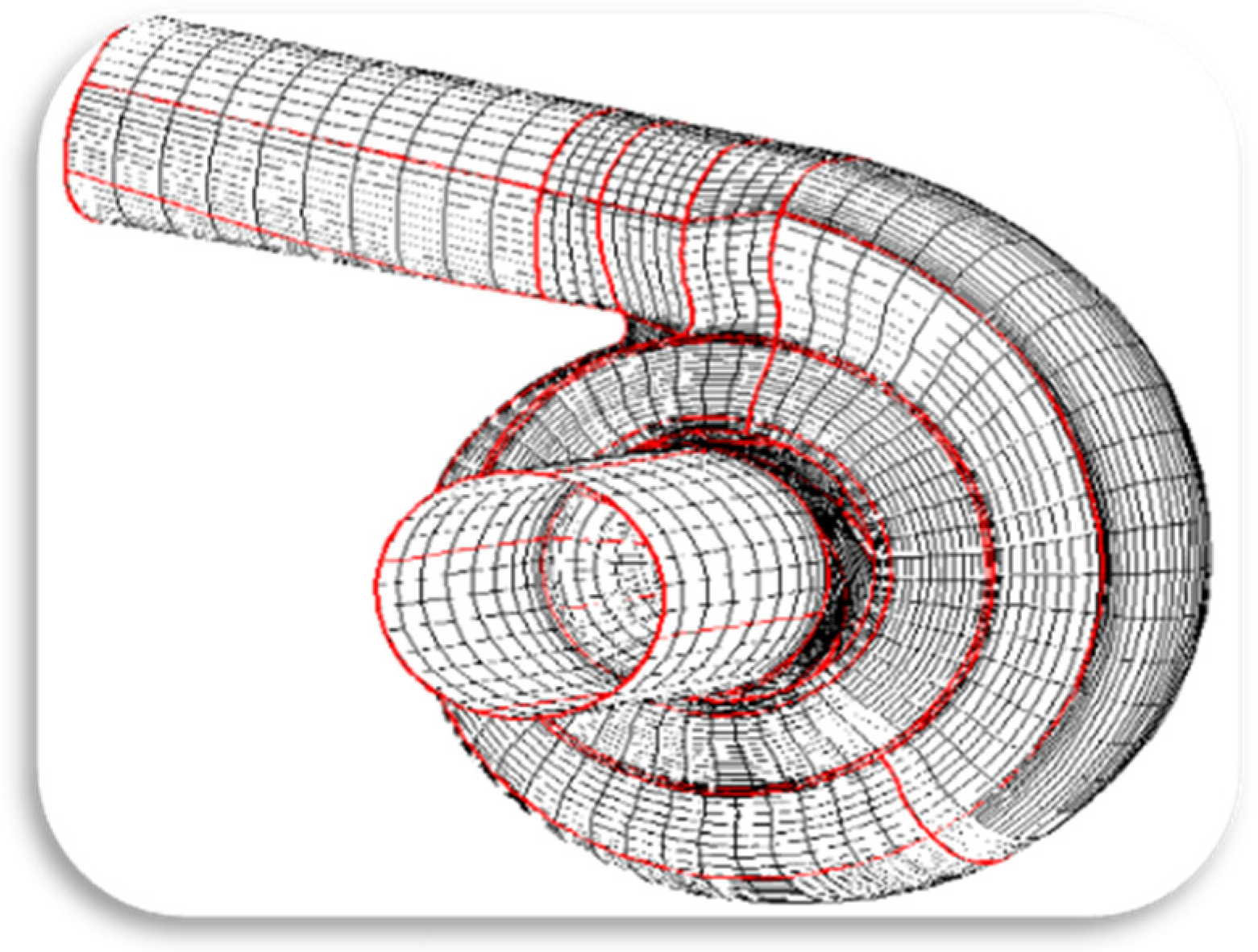 Structural optimization and flow analysis were carried out for the compressor inlet volute, discharge volute, and internal flow passages through an iterative design process. The optimization did not involve major changes to the overall structural form; instead, for the large-shaft, large-casing centrifugal compressor used in this study, the transition lengths and dimensions between the inlet/outlet volutes, inlet/outlet piping, and the compressor flow passages were refined to ensure optimal flow performance. In the revised computational setup, a tetrahedral mesh was generated for the flow domain, containing approximately 2,951,312 cells, and a grid independence test was performed to ensure the reliability of the CFD results. As shown in Figure 3 and Figure 4, these optimizations improved flow uniformity and reduced aerodynamic losses, decreasing volute loss from 1.3% to 1.1%. The compressor’s polytropic efficiency exceeded 82%, reaching the level of comparable imported units.
