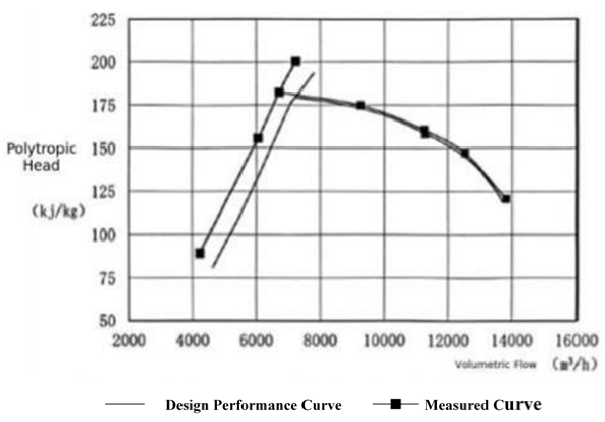 According to API 617 and ASME PTC 10 requirements, the compressor performance meets design specifications [22].