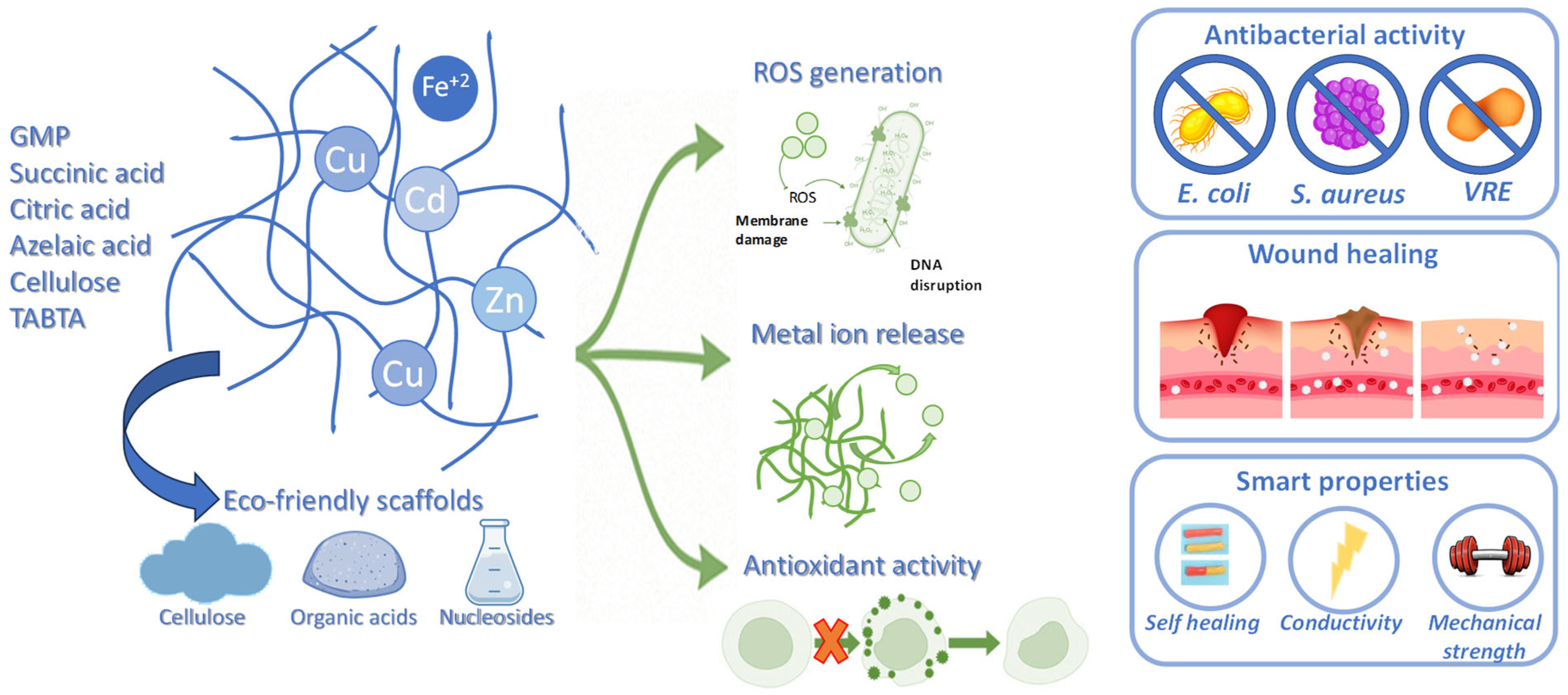 3. Antibacterial, Antioxidant, and Wound Healing Metallogels