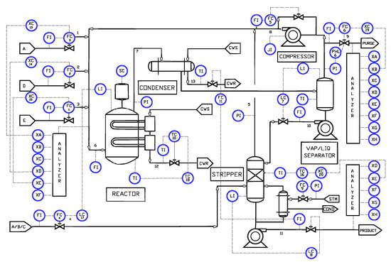 - Downs, J.J.; Vogel, E.F. A Plant-Wide Industrial Process Control Problem. Comput. Chem. Eng. 1993, 17, 245–255. [Google Scholar] [CrossRef]
