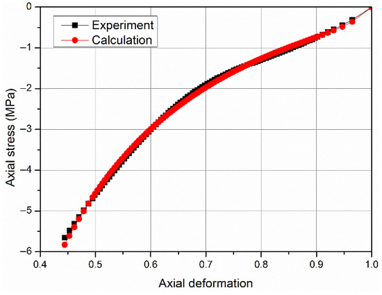The results of axial deformation and measured stress in the experiment are substituted into the above calculation formula, and the results of , , and are determined by the nonlinear fitting method. The values of the results are