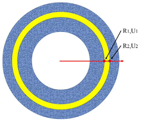 When the shape of the thermosensitive screen is restored and becomes stable, it experiences significant deformation. The outer diameter of the thermosensitive screen is the same as the inner diameter of the wellbore wall, and the inner diameter is the same as the outer diameter of the base tube (the base tube is sleeved in the thermosensitive screen; see Figure 4). As the radial compression deformation has little effect on the axial deformation, the calculation problem can be simplified to a plane stress problem.