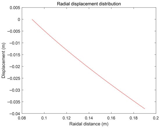 Figure 6 shows the radial displacement of a point along different radial positions. The radial compression displacement at the outermost part is the largest.