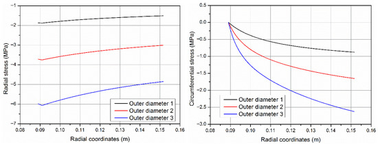 Comparison of radial stress and circumferential stress of different outer diameters.